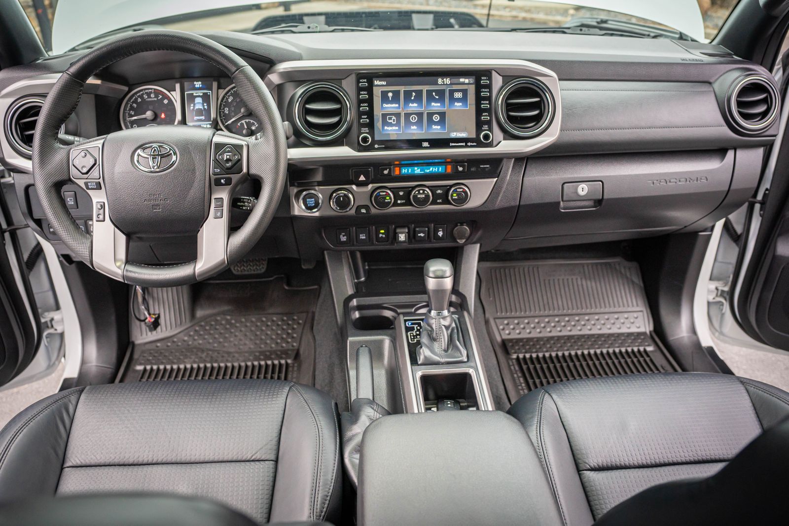 The 2023 Toyota Tacoma Limited 4x4 Double Cab is powered by the proven 3.5L V6 paired with a 6-speed automatic transmission and part-time four-wheel drive. Equipped with the Nightshade Package, JBL premium audio with dynamic navigation, panoramic view monitor, leather heated seats, sunroof, and Predator tube steps, this Tacoma combines luxury, technology, and off-road capability. Known for legendary reliability and resale value, the Tacoma remains one of the most sought-after midsize trucks on the market.