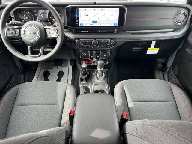 Quick Order Package 24R Rubicon,MyFlexCare Service Plan,Convenience Group,Steel Power Dome Hood Package,Steel Bumper Group,Freedom Panel Storage Bag,MOPAR All-Weather Slush Mats,4.10 Rear Axle Ratio,Rear Window Defroster,Rear Sliding Window,Body Color 3-Piece Hard Top,110 Mph Vehicle Max Speed Calibration,Heated Front Seats,Cloth Low-Back Bucket Seats,Steel Front Bumper,Front License Plate Bracket,Power Dome Dual Vented Hood,Heated Steering Wheel,Google Android Auto,USB Host Flip,Alexa Built-in,Apple CarPlay,12.3 Touchscreen Display,Integrated Center Stack Radio,Connectivity - US/Canada,4G LTE Wi-Fi Hot Spot,SiriusXM with 360L,Performance Suspension,Radio: Uconnect 5 with 12.3 Display,Wheels: 17 x 7.5 Machined/Painted Black,SiriusXM Radio Service,For Details,Visit DriveUconnect.com,Remote Start System,Universal Garage Door Opener,MOPAR Spray in Bedliner,Manufacturer's Statement of Origin,4-Wheel Disc Brakes,Emergency communication system: Jeep Connect,Apple CarPlay/Android Auto,AM/FM radio: SiriusXM with 360L,Front Center Armrest w/Storage,Compass,8 Speakers,Front beverage holders,Variably intermittent wipers,Trip computer,Traction control,Tilt steering wheel,Telescoping steering wheel,Steering wheel mounted audio controls,Split folding rear seat,Speed control,Security system,Remote keyless entry,Rear reading lights,Rear anti-roll bar,Radio data system,Power windows,Power steering,Power door mirrors,Passenger vanity mirror,Passenger door bin,Panic alarm,Overhead airbag,Outside temperature display,Occupant sensing airbag,Low tire pressure warning,Integrated roll-over protection,Illuminated entry,Heated door mirrors,Fully automatic headlights,Front reading lights,Front fog lights,Front dual zone A/C,Front anti-roll bar,Dual front side impact airbags,Dual front impact airbags,Driver vanity mirror,Driver door bin,Delay-off headlights,Brake assist,Automatic temperature control,Alloy wheels,ABS brakes,Voltmeter,Tachometer,Front Bucket Seats,Electronic Stability Control,Air Conditioning,BLACK CLOTH LOW-BACK BUCKET SEATS,MOPAR SPRAY IN BEDLINER,MYFLEXCARE SERVICE PLAN,BODY COLOR 3-PIECE HARD TOP -inc: Freedom Panel Storage Bag Rear Window Defroster Rear Sliding Window,MOPAR ALL-WEATHER SLUSH MATS,17 X 7.5 MACHINED/PAINTED BLACK WHEELS (STD),CONVENIENCE GROUP -inc: Heated Steering Wheel Remote Start System Universal Garage Door Opener Heated Front Seats,8-SPEED AUTOMATIC 850RE TRANSMISSION (STD),QUICK ORDER PACKAGE 24R RUBICON -inc: 3.6L V6 24V VVT UPG I Engine w/ESS 8-Speed Automatic 850RE Transmission,MANUFACTURER'S STATEMENT OF ORIGIN,LT285/70R17C BSW A/T TIRES (STD),STEEL BUMPER GROUP -inc: Steel Front Bumper,ANVIL CLEARCOAT,3.6L V6 24V VVT UPG I ENGINE W/ESS (STD),FRONT LICENSE PLATE BRACKET,STEEL POWER DOME HOOD PACKAGE -inc: Power Dome Dual Vented Hood,Four Wheel Drive,Locking/Limited Slip Differential,Locking/Limited Slip Differential,Tow Hitch,Power Steering,ABS,4-Wheel Disc Brakes,Brake Assist,Locking/Limited Slip Differential,Brake Actuated Limited Slip Differential,Aluminum Wheels,Tires - Front All-Terrain,Tires - Rear All-Terrain,Conventional Spare Tire,Tow Hooks,Tow Hooks,Heated Mirrors,Power Mirror(s),Intermittent Wipers,Variable Speed Intermittent Wipers,Privacy Glass,Rollover Protection Bars,Convertible Soft Top,Power Door Locks,Daytime Running Lights,Automatic Headlights,LED Headlights,Fog Lamps,AM/FM Stereo,Satellite Radio,Bluetooth Connection,Requires Subscription,MP3 Capability,Steering Wheel Audio Controls,Auxiliary Audio Input,Satellite Radio,Requires Subscription,Bluetooth Connection,Driver Adjustable Lumbar,Driver Adjustable Lumbar,Pass-Through Rear Seat,Rear Bench Seat,Adjustable Steering Wheel,Trip Computer,Power Windows,Keyless Entry,Power Door Locks,Keyless Entry,Power Door Locks,Keyless Start,Cruise Control,Adaptive Cruise Control,Climate Control,Multi-Zone A/C,A/C,Cloth Seats,Bucket Seats,Driver Vanity Mirror,Passenger Vanity Mirror,Driver Illuminated Vanity Mirror,Passenger Illuminated Visor Mirror,Floor Mats,Smart Device Integration,Smart Device Integration,WiFi Hotspot,Power Windows,Power Door Locks,Trip Computer,Immobilizer,Security System,Traction Control,Stability Control,Traction Control,Front Side Air Bag,Telematics,Requires Subscription,Front Collision Mitigation,Tire Pressure Monitor,Driver Air Bag,Passenger Air Bag,Front Head Air Bag,Rear Head Air Bag,Passenger Air Bag Sensor,Child Safety Locks,Back-Up Camera