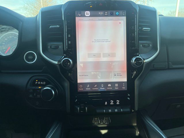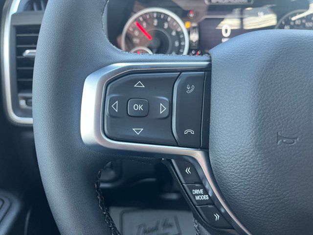Quick Order Package 27Z Big Horn,MyFlexCare Service Plan,Big Horn Level 2 Equipment Group,Night Edition,Cloth Bucket Seats,Bucket Seats,2nd Row in Floor Storage Bins,4 Way Front Headrests,Rear 60/40 Folding Seat,MOPAR Front and Rear Rubber Floor Mats,Heated Front Seats,3 Rear Seat Head Restraints,Rear Center Armrest,Front Seat Back Map Pockets,Full Length Floor Console,Premium Overhead Console,Anti-Spin Differential Rear Axle,Rear Window Defroster,Rear Power Sliding Window,Sun Visors with Illuminated Vanity Mirrors,Auto-Dimming Rear-View Mirror,Auto-Dimming Exterior Driver Mirror,Accent Color Premium Power Mirrors,Black Premium Power Mirrors,Air Conditioning ATC with Dual Zone Control,Accent Color Tailgate Handle,Cluster 7.0 TFT Color Display,115V Auxiliary Rear Power Outlet,Remote Tailgate Release,115V Auxiliary Power Outlet,GPS Navigation,GPS Antenna Input,Power 2-Way Driver Lumbar Adjust,Manual Adjust 4-Way Driver Seat,Power Adjust 8-Way Driver Seat,Manual Adjust 4-Way Front Passenger Seat,Glove Box Lamp,LED Dome Lamp with on/Off Switch,LED Footwell Lighting,Black Exterior Mirrors,Black Painted Exterior Mirrors Caps,Exterior Mirrors with Supplemental Signals,Exterior Mirrors Courtesy Lamps,Convex Wide-Angle Exterior Mirror Insert,Manual Folding Exterior Mirrors,Auto Power-Folding Mirrors,Overhead LED Lamps,Security Alarm,Black Tail Lamp Bezels,Black Exterior Truck Badging,Body Color Front Bumper,Body Color Rear Bumper with Step Pads,Front License Plate Bracket,RAM Grille Badge - Black,Black Headlamp Bezels,Grille Black Surround Black Mesh,Body Color Fender Flares,Accent Color Door Handles,RAM Grille Badge - Chrome,Dual Exhaust with Black Tips,Exterior Mirrors with Heating Element,Heated Steering Wheel,9 Amplified Speakers with Subwoofer,Global Telematics Box Module,Steering Wheel Mounted Audio Controls,HD Radio,Google Android Auto,USB Host Flip,12 Touchscreen Display,Apple CarPlay,Disassociated Touchscreen Display,Media Hub with 2 Charge Only USBs,Integrated Center Stack Radio,Connectivity - US/Canada,4G LTE Wi-Fi Hot Spot,SiriusXM with 360L,Connected Travel and Traffic Services,Leather Wrapped Steering Wheel,Deluxe Cloth Bucket Seats,Radio: Uconnect 5 W with 8.4 Display,Radio: Uconnect 5 Navigation with 12.0 Display,Wheels: 20 x 9.0 Aluminum Painted Clad,Center Console Parts Module,SiriusXM Radio Service,Power Adjustable Pedals,48V Belt Starter Generator,Universal Garage Door Opener,Trailer Brake Control,Configurable Drive Mode,400W Inverter,Integrated Voice Command with Bluetooth,Black Interior Accents,Supplier Part Tracking (J-1),Manufacturer's Statement of Origin,4-Wheel Disc Brakes,Apple CarPlay/Android Auto,Auto High-beam Headlights,Front Center Armrest w/Storage,Compass,Variably intermittent wipers,Trip computer,Traction control,Tilt steering wheel,Telescoping steering wheel,Speed control,Remote keyless entry,Rear step bumper,Rear anti-roll bar,Radio data system,Power windows,Power steering,Power door mirrors,Passenger vanity mirror,Passenger door bin,Panic alarm,Overhead console,Overhead airbag,Outside temperature display,Occupant sensing airbag,Low tire pressure warning,Illuminated entry,Heated door mirrors,Fully automatic headlights,Front wheel independent suspension,Front reading lights,Front fog lights,Front anti-roll bar,Dual front side impact airbags,Dual front impact airbags,Driver door bin,Delay-off headlights,Bumpers: chrome,Brake assist,Alloy wheels,AM/FM radio,ABS brakes,Voltmeter,Tachometer,ParkView Rear Back-Up Camera,Front Bucket Seats,Electronic Stability Control,Air Conditioning,Adaptive Cruise Control,6 Speakers,3.92 REAR AXLE RATIO,BLACK DELUXE CLOTH BUCKET SEATS -inc: Power Adjust 8-Way Driver Seat Rear 60/40 Folding Seat Rear Center Armrest Front Seat Back Map Pockets Power 2-Way Driver Lumbar Adjust,WHEELS: 20 X 9.0 ALUMINUM PAINTED CLAD,MYFLEXCARE SERVICE PLAN,NIGHT EDITION -inc: Tires: 275/55R20 OWL All Season Bridgestone Brand Tires Accent Color Premium Power Mirrors Exterior Mirrors w/Supplemental Signals Black Headlamp Bezels Exterior Mirrors Courtesy Lamps Grille Black Surround Black Mesh Auto Power-Folding Mirrors Wheels: 20 x 9.0 Aluminum Painted Clad Auto Dim Exterior Driver Mirror Black Exterior Truck Badging Anti-Spin Differential Rear Axle Accent Color Door Handles Accent Color Tailgate Handle Black Interior Accents Dual Exhaust w/Black Tips Body Color Front Bumper Body Color Rear Bumper w/Step Pads Black Tail Lamp Bezels RAM Grille Badge - Black Black Painted Exterior Mirrors Caps,9 AMPLIFIED SPEAKERS W/SUBWOOFER,MANUFACTURER'S STATEMENT OF ORIGIN,GVWR: 7 100 LBS,RADIO: UCONNECT 5 NAV W/12.0 DISPLAY,ENGINE: 5.7L V8 HEMI MDS VVT ETORQUE -inc: Active Noise Control System Heavy Duty Engine Cooling Passive Tuned Mass Damper GVWR: 7 100 lbs Dual Rear Exhaust w/Bright Tips G/T Exhaust 18 Aluminum Spare Wheel,FORGED BLUE METALLIC,TRANSMISSION: 8-SPEED AUTOMATIC (8HP75),MOPAR FRONT & REAR RUBBER FLOOR MATS,TIRES: 275/55R20 OWL ALL SEASON -inc: Bridgestone Brand Tires,TRAILER BRAKE CONTROL,FRONT LICENSE PLATE BRACKET,ANTI-SPIN DIFFERENTIAL REAR AXLE,QUICK ORDER PACKAGE 27Z BIG HORN -inc: Engine: 5.7L V8 HEMI MDS VVT eTorque Transmission: 8-Speed Automatic (8HP75),BIG HORN LEVEL 2 EQUIPMENT GROUP -inc: SiriusXM Radio Service Power Adjustable Pedals Leather Wrapped Steering Wheel 12 Touchscreen Display Glove Box Lamp Auto Power-Folding Mirrors 115V Auxiliary Rear Power Outlet Media Hub w/2 Charge Only USBs Heated Front Seats Security Alarm Black Premium Power Mirrors Premium Overhead Console 9 Amplified Speakers w/Subwoofer Disassociated Touchscreen Display Body Color Fender Flares Remote Tailgate Release 115V Auxiliary Power Outlet LED Dome Lamp w/On/Off Switch Universal Garage Door Opener 2nd Row In Floor Storage Bins Sun Visors w/Illuminated Vanity Mirrors LED Footwell Lighting Rear Window Defroster Rear View Auto Dim Mirror Rear Power Sliding Window GPS Navigation Overhead LED Lamps Wheels: 20 x 9 Aluminum Chrome Clad (WRK) Tires: 275/55R20 OWL All S