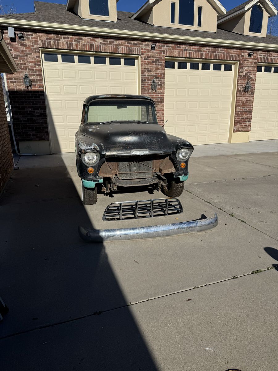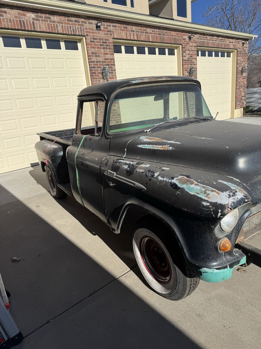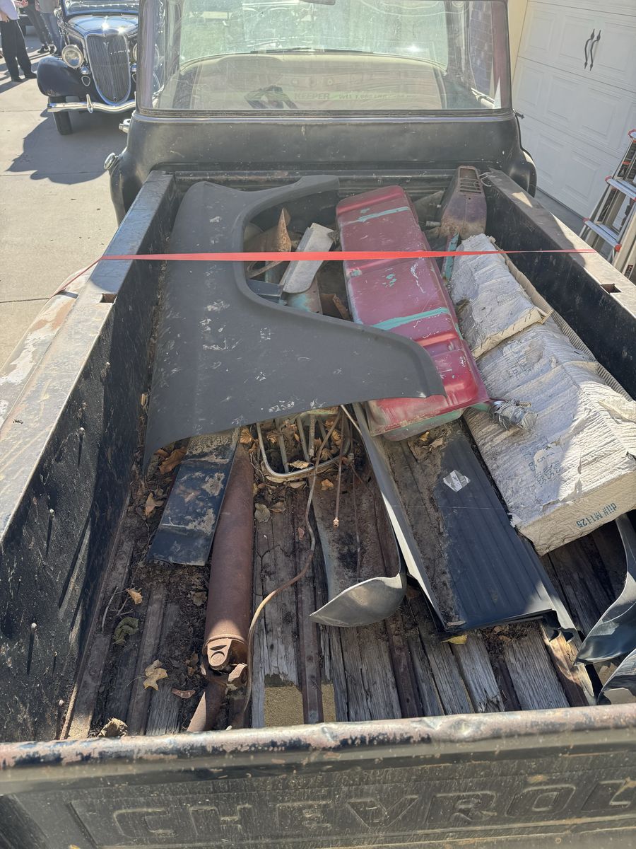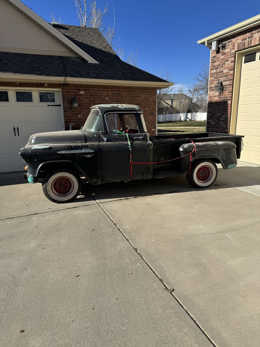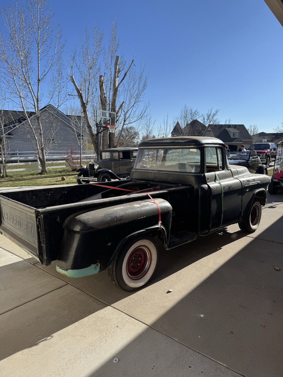 This 1956 Chevrolet 3100 was going to be a rebuild project. I just ran out of time and energy. It was torn down to the frame. The frame has been sandblasted the engine and transmission have been removed and are no longer with the truck. I was going to put a new engine and trany in. The frame is in excellent condition. New wheels and the body is in good condition. The windows are all unbroken. New door window new grill. Bumpers are good with no dents. and assorted parts such as complete wiring harness.