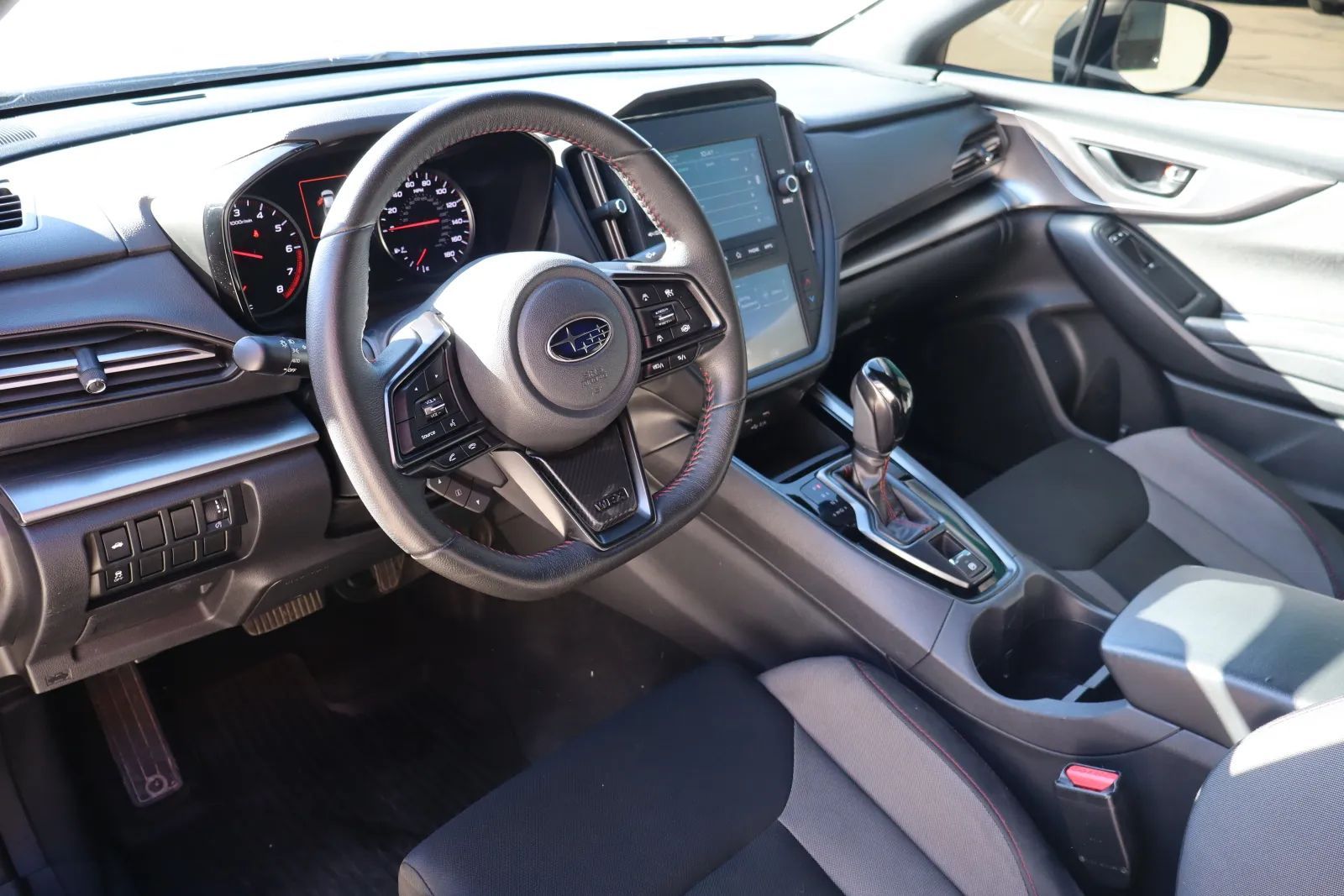 Front Pedestrian Automatic emergency braking, Front Automatic emergency braking, Lane keeping assist, Check rear seat reminder, Audible Warning Pre-collision warning system, Visual Warning Pre-collision warning system, Lane deviation sensors, Driver Knee airbags, Rearview Camera system, Front Side airbags, Rear Side curtain airbags, Front Side curtain airbags, 4-wheel ABS, Cornering brake control, Auto-locking Power door locks, Auto Off Electronic parking brake, Ventilated Disc Rear brake, Alarm Anti-theft system, Braking assist, Hill holder control, Ventilated Disc Front brake, Dual Front airbags, Vehicle Immobilizer Anti-theft system, Power brakes, LATCH System Child seat anchors, Electronic brakeforce distribution, Stability control, Traction control, In Dash Rearview monitor, Occupant Sensing Passenger Airbag deactivation, Front Seatbelt pretensioners, Front Seatbelt force limiters, Front Emergency locking retractors, Rear Seatbelt pretensioners, Rear Emergency locking retractors, Front Seatbelt warning sensor, Fuel Cut-off Impact sensor, Semi-automatic Adaptive stop and go cruise control, Lane Centering Autonomous lane guidance, Adaptive cruise control, Leather Steering wheel trim, Automatic Climate Control Front air conditioning, Paddle Shifter Steering wheel mounted controls, Leather Shift knob trim, Sport Bucket Front seat, Contrast Stitching Upholstery accents, Variable/speed-proportional Power steering, Cloth Upholstery, Simulated Carbon Fiber Door trim, Keyless Entry Multi-function remote, 60-40 Split Bench Rear seat, Carpet Floor mat material, Air filtration, Footwell lights, Flat Rear seat folding, USB Front Power outlet(s), Two 12V Front Power outlet(s), Tilt And Telescopic Steering wheel, Rear Floor mats, Front Floor mats, Multi-function display, Front Console With Armrest And Storage Center console, Illuminated Center console, External temperature display, MPG Fuel economy display, Range Fuel economy display, 6 Driver seat manual adjustments, Front Reading lights, Tachometer Gauge, Door Courtesy lights, Manual Day/night Rearview mirror, Front Cupholders, Maintenance Due Warnings and reminders, Front Overhead console, Cargo area light, Metallic Dash trim, 2 One-touch windows, Panic Alarm Multi-function remote, Audio Steering wheel mounted controls, Dual Vanity mirrors, Carpet Floor material, Cruise Control Steering wheel mounted controls, Phone Steering wheel mounted controls, Multi-function Steering wheel mounted controls, Front Seatback Storage, Voice Control Steering wheel mounted controls, Single Front air conditioning zones, Trunk Release Multi-function remote, Organizer Tray Center console, 3.5 In. Instrument cluster screen size, Painted Aluminum Alloy Wheels, LED Headlights, Self-leveling Headlights, Auto High Beam Dimmer Headlights, LED Daytime running lights, Quad Tip Exhaust, Safety Reverse Power windows, Power Side mirror adjustments, Tire Sealant Spare tire kit, Inflator Kit Spare tire kit, Ground effects/lower spoilers, Hood scoop, Rear Window defogger, Variable Intermittent Front wipers, Tire Pressure Monitoring System, Auto On/off Headlights, Auto Delay Off Headlights, Black Fender lip moldings, Front Underguard Bumper detail, Rear Underguard Bumper detail, Wiper Activated Headlights, Black Window trim, Manual Folding Side mirror adjustments, Black Grille color, Stainless Steel Exhaust tip color, Black Headlight bezel color, Apple CarPlay Smartphone integration, Android Auto Smartphone integration, MySubaru Smart device app compatibility, 7 In. (dual) Infotainment screen size, Bluetooth Wireless data link, Voice Operated Hands-free phone call integration, Voice Operated Radio, Bluetooth Auxiliary audio input, HD Radio Radio, Touch Screen Display Radio, With Read Function Electronic messaging assistance, Voice Operated Electronic messaging assistance, SiriusXM Satellite radio, 6 Total speakers, USB Auxiliary audio input, IPod/iPhone Auxiliary audio input, Voice Guided Directions Satellite communications, STARLINK Infotainment, Jack Auxiliary audio input, AM/FM Radio, Radio data system, Speed sensitive volume control, SiriusXM Travel Link Connected in-car apps, Google POIs Connected in-car apps, Google Search Connected in-car apps, Performance exhaust, Sport Tuned suspension, Full Time 4WD, Independent Front suspension classification, Independent Rear suspension classification, MacPherson Front struts, Double Wishbone Rear suspension, Front stabilizer bar, Rear stabilizer bar, Battery saver