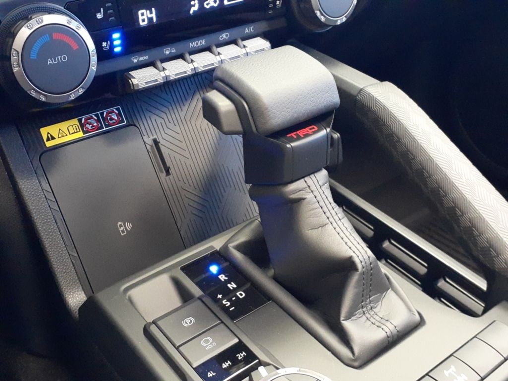 TRD Offroad Premium,Moonroof,4runner All Weather Floor Mats,Front and Rear Molded Black 4Runner Mudguards,4runner All Weather Cargo Tray,Black Front Emblem Badge Overlay,Badge Inserts, Rear TOYOTA Matte Black,Apple CarPlay/Android Auto smart device wireless mirroring,Lane Tracing Assist (LTA) hands-on cruise control,Toyota Safety Sense P (TSS-P) forward collision mitigation,Pre-Collision System with Pedestrian Detection,Wi-Fi Connect with up to 2GB within 3-month trial mobile hotspot internet access,Rear mounted camera,Lane Departure Alert (LDA),Dynamic Radar Cruise Control (DRCC),Brake assist system,Cruise control with steering wheel mounted controls,Ventilated driver and front passenger seats,Integrated navigation system with voice activation,Heated steering wheel,Heated driver and front passenger seats,SofTex leatherette front seat upholstery,Primary monitor touchscreen,Rear Cross-Traffic Alert (RCTA) collision warning,First-row sliding and tilting glass sunroof with express open/close activation sunshade,Driver seat power reclining, lumbar support, cushion tilt, fore/aft control and height adjustable control,Multi-Mode part and full-time 4WD,I-FORCE 2.4L I-4 port/direct injection, DOHC, variable valve control, intercooled turbo, regular unleaded, engine with 278HP,I-FORCE 2.4L I-4 DOHC,Road Sign Assist (RSA),Smart Key with hands-free access and push button start,Keyfob window control,Multi-Terrain Monitor (MTM) ground view camera,Push-button,Automatic brake hold,Bluetooth wireless audio streaming,Blind Spot Monitor (BSM),Dual-zone front climate control,Automatic High Beams (AHB) auto high-beam headlights,Immobilizer,Vehicle tracker,JBL speakers,Real-time traffic,Safety Connect (1-year trial) vehicle integrated emergency SOS system,Bluetooth handsfree wireless device connectivity,External memory control,5 USB ports,Digital/analog instrumentation display,Electronic stability control system,Hill descent control,Hill Start Assist Control (HAC),Automatic climate control,Rear seat check warning,2.400 kW,LED brake lights,LED front fog lights,Leather steering wheel
