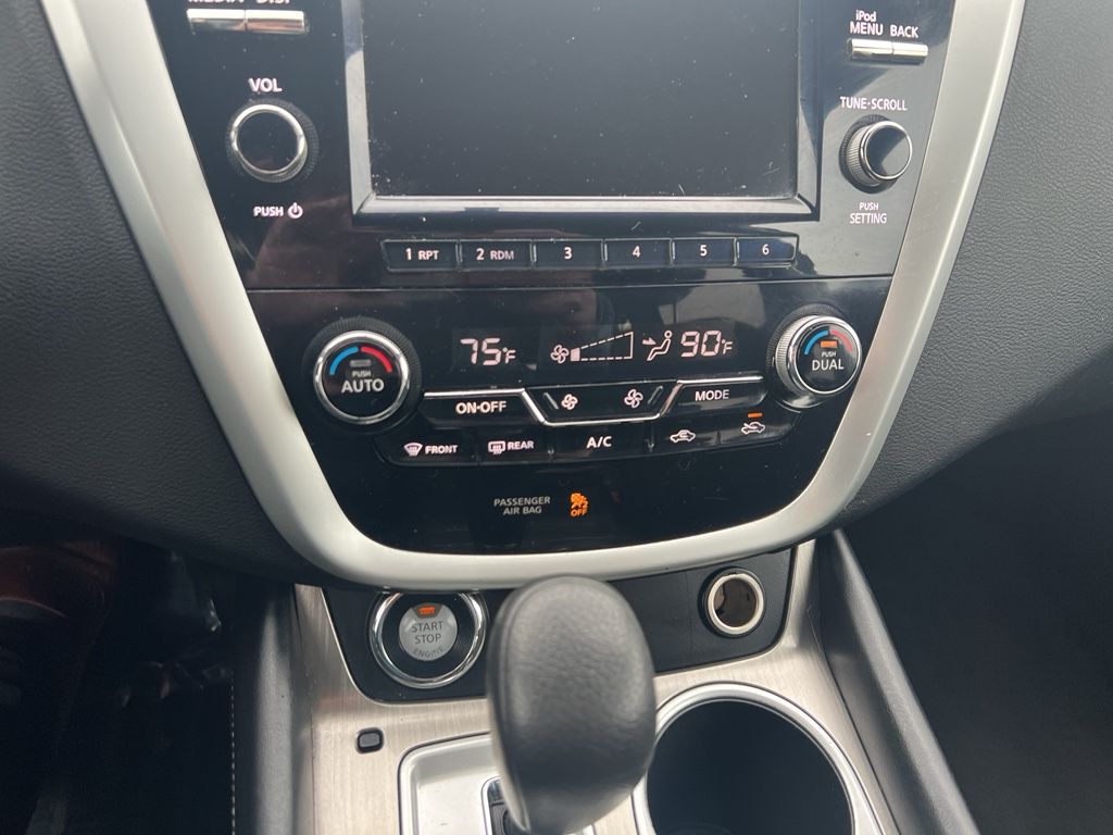 Carpeted Floor Mats and Cargo Mat,RearView Monitor rear mounted camera,Brake assist system,Cruise control with steering wheel mounted controls,Automatic full-time AWD,3.5L V-6 DOHC, variable valve control, regular unleaded, engine with 260HP,3.5L V-6 DOHC,Intelligent Key with hands-free access and push button start,Keyfob window control,Push-button,Bluetooth wireless audio streaming,Dual-zone front climate control,Immobilizer,Bluetooth handsfree wireless device connectivity,NissanConnect external memory control,Electronic stability control system,Hill start assist,Automatic climate control,LED daytime running lights,LED brake lights,3 12V power outlets,Manual reclining rear seats,Manual rear child safety door locks,Manual tilting steering wheel,Manual telescopic steering wheel,Metallic paint,18 x 7.5-inch front and rear machined aluminum wheels,P235/65TR18 AS BSW front and rear tires,Cloth front seat upholstery,7 airbags,Driver front impact airbag,Seat mounted side impact driver airbag,Curtain first and second-row overhead airbags,Passenger front impact airbag,Seat mounted side impact front passenger airbag,Airbag occupancy sensor,Driver side knee airbag,Auto-locking doors,Valet key,Xtronic CVT,Cloth rear seat upholstery,Cabin air filter,Rear under seat climate control ducts,Rear console climate control ducts,Exterior temperature display,Transmission electronic control,Automatic,Projector beam headlights,Halogen headlights,Auto on/off headlight control,Delay-off headlights