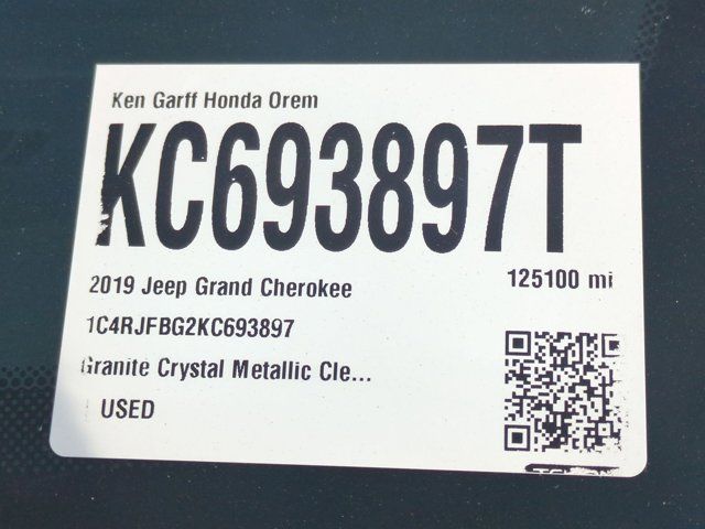 Ken Garff Honda is pleased to offer this wonderful 2019 Jeep Grand Cherokee Limited in Granite Crystal Metallic Clearcoat.Value Certified, 4WD, 3.45 Rear Axle Ratio, 4-Wheel Disc Brakes, 506 Watt Amplifier, 6 Speakers, 8.4 Touchscreen Display, ABS brakes, Active Noise Control System, Air Conditioning, Alloy wheels, AM/FM radio: SiriusXM, Anti-whiplash front head restraints, Apple CarPlay/Android Auto, Audio memory, Auto High Beam Headlamp Control, Auto-dimming door mirrors, Auto-dimming Rear-View mirror, Automatic temperature control, Bi-Xenon High-Intensity Discharge Headlamps, Brake assist, Bumpers: body-color, Cargo Compartment Cover, Chrome Exterior Mirrors, Compass, Delay-off headlights, Driver door bin, Driver vanity mirror, Dual front impact airbags, Dual front side impact airbags, Dual-Pane Panoramic Sunroof, Electronic Stability Control, Emergency communication system: SiriusXM Guardian, Four wheel independent suspension, Front anti-roll bar, Front Bucket Seats, Front Center Armrest w/Storage, Front dual zone A/C, Front fog lights, Front LED Fog Lamps, Front License Plate Bracket, Front reading lights, Fully automatic headlights, Garage door transmitter, Heated door mirrors, Heated front seats, Heated Second Row Seats, Heated steering wheel, Illuminated entry, Knee airbag, Leather Shift Knob, Leather Trimmed Bucket Seats, Leather Trimmed Seats w/Perforated Inserts, LED Daytime Running Headlamps, Low tire pressure warning, Luxury Group II, Manufacturer's Statement of Origin, Memory seat, Navigation System, Normal Duty Suspension, Occupant sensing airbag, Outside temperature display, Overhead airbag, Overhead console, Panic alarm, ParkView Rear Back-Up Camera, Passenger door bin, Passenger vanity mirror, Power door mirrors, Power driver seat, Power Liftgate, Power passenger seat, Power steering, Power Tilt/Telescope Steering Column, Power windows, Premium Alpine Speaker System, Quick Order Package 2BH, Radio data system, Radio: Uconnect 4C Nav w/8.4 Display, Rain Sensitive Windshield Wipers, Rear anti-roll bar, Rear reading lights, Rear seat center armrest, Rear window defroster, Rear window wiper, Remote keyless entry, Roof rack: rails only, Security system, Speed control, Speed-sensing steering, Speed-Sensitive Wipers, Split folding rear seat, Spoiler, Steering wheel mounted audio controls, Tachometer, Telescoping steering wheel, Tilt steering wheel, Traction control, Trip computer, Turn signal indicator mirrors, Variably intermittent wipers, Ventilated Front Seats, Voltmeter, Wheels: 18 x 8.0 Tech Gray Aluminum, 4WD.In addition to transparent, no hassle pricing and upfront no hassle trade evaluation.....We provide an enjoyably brief and easy Sales Experience...Your Pace...Your Deal...No Exceptions!