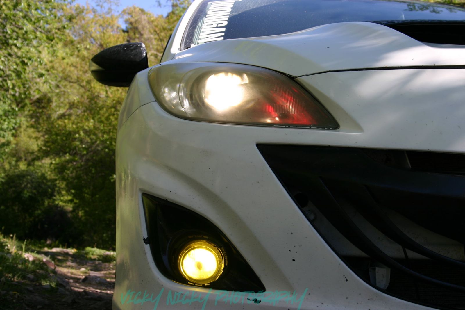 Paint is not perfect and has some chips on the front bra, as per usual for Mazda.