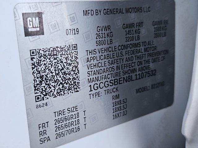 ENGINE 3.6L DI DOHC V6 VVT (308 hp [230.0 kW] @ 6800 rpm 275 lb-ft of torque [373 N-m] @ 4000 rpm) (STD),WORK TRUCK PREFERRED EQUIPMENT GROUP includes standard equipment,DOOR HANDLES BODY-COLOR,TIRES 265/60R18 ALL-SEASON BLACKWALL,REAR AXLE 3.42 RATIO,TAILGATE EZ-LIFT AND LOWER,TRANSMISSION 8-SPEED AUTOMATIC (STD),LPO GRILLE BODY-COLOR,THEFT-DETERRENT SYSTEM UNAUTHORIZED ENTRY,REMOTE KEYLESS ENTRY EXTENDED RANGE,4G LTE WI-FI HOTSPOT CAPABLE,TRAILER BRAKE CONTROLLER INTEGRATED,CUSTOM SPECIAL EDITION includes (VAT) body-color grille LPO (D75) body-color door handles (DL6) outside power-adjustable body-color remote manual-folding mirrors (VT5) body-color rear bumper (RCV) 18 Dark Argent Metallic cast aluminum wheels and (UE1) OnStar,MIRRORS OUTSIDE POWER-ADJUSTABLE BODY-COLOR MANUAL-FOLDING,WHEELS 18 X 8.5 (45.7 CM X 21.6 CM) DARK ARGENT METALLIC CAST ALUMINUM Includes (QIA) 265/60R18 all-season blackwall tires.,CRUISE CONTROL ELECTRONIC AUTOMATIC,BUMPER REAR BODY-COLOR,SUMMIT WHITE,JET BLACK/DARK ASH CLOTH SEAT TRIM,SEATS FRONT BUCKET (STD),LICENSE PLATE KIT FRONT,ONSTAR AND CHEVROLET CONNECTED SERVICES CAPABLE,WT CONVENIENCE PACKAGE includes (ATG) Remote Keyless Entry (UTJ) theft-deterrent system (K34) electronic cruise control (PPA) EZ-Lift tailgate and (A91) Remote locking tailgate,AUDIO SYSTEM CHEVROLET INFOTAINMENT 3 SYSTEM 7 diagonal color touchscreen AM/FM stereo. Additional features for compatible phones include: Bluetooth audio streaming for 2 active devices voice command pass-through to phone Apple CarPlay and Android Auto capable (STD),TAILGATE REMOTE LOCKING (locks and unlocks with key fob),Locking/Limited Slip Differential,Rear Wheel Drive,Tow Hitch,Power Steering,ABS,4-Wheel Disc Brakes,Tires - Front All-Season,Tires - Rear All-Season,Temporary Spare Tire,Automatic Headlights,AM/FM Stereo,Bluetooth Connection,Smart Device Integration,Bucket Seats,Power Driver Seat,Rear Bench Seat,Floor Mats,Floor Mats,Adjustable Steering Wheel,Power Windows,Power Door Locks,Immobilizer,Auxiliary Audio Input,A/C,Passenger Vanity Mirror,Traction Control,Stability Control,Traction Control,Daytime Running Lights,Driver Air Bag,Passenger Air Bag,Front Side Air Bag,Front Head Air Bag,Rear Head Air Bag,Passenger Air Bag Sensor,Back-Up Camera,Driver Restriction Features,Tire Pressure Monitor