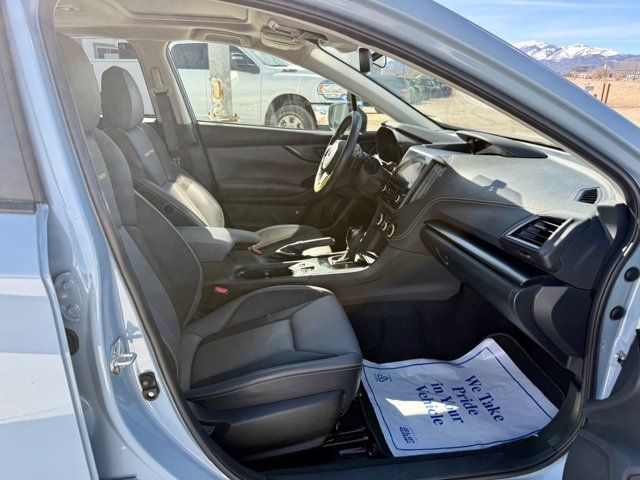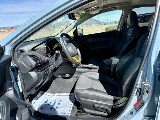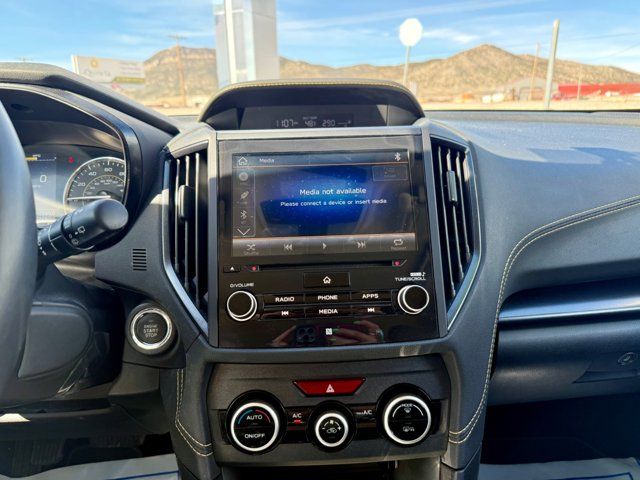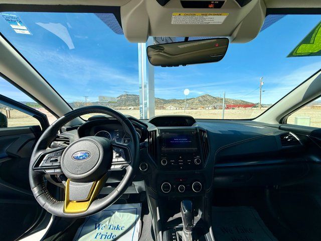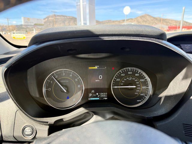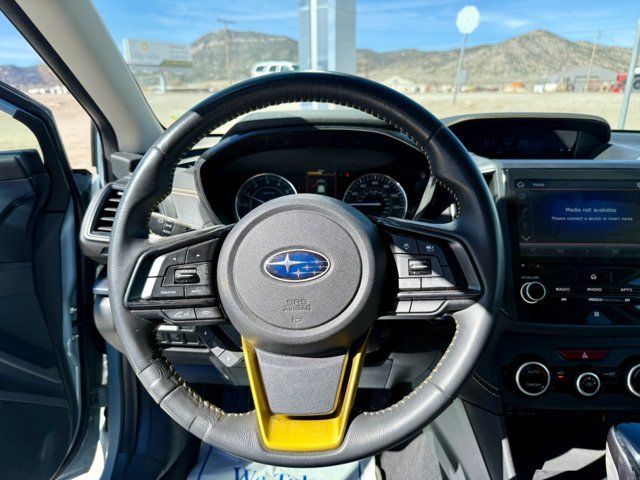 AERO CROSSBAR SET -inc: Part number E361SFL400,COOL GRAY KHAKI,GRAY W/YELLOW STITCHING STARTEX UPHOLSTERY,REAR SEATBACK PROTECTOR -inc: Part number J501SFL403,CARGO NET -inc: Part number F551SFL000,MOONROOF PACKAGE -inc: Blind Spot Detection (BSD) Rear Cross-Traffic Alert (RCTA) system Power Moonroof Radio: Subaru STARLINK 8.0 Multimedia Plus System AM/FM stereo HD Radio single disc CD player w/MP3/WMA/CRR/RW file capability multi touch gesture high resolution display screen voice activated controls Bluetooth audio streaming and hands-free phone connectivity Bluetooth hands-free SMS text messaging connectivity Near Field Communication (NFC) iPod control capability SiriusXM All Access Radio (subscription required) required after) SiriusXM Travel Link (subscription required) required after) smartphone integration: AHA Android Auto CarPlay Pandora and STARLINK cloud applications USB audio system USB and Over The Air (OTA) audio system 6 speakers (2 dash panel tweeter 2 front door and 2 rear door) 3.5mm auxiliary input jack dual USB input/charge ports and roof mounted audio satellite and connected services antenna,POPULAR PACKAGE #3 -inc: Auto-Dimming Mirror w/Compass & HomeLink Part number H501SSG304 Map & Dome Lights LED Upgrade Part number H461SFL100 Auto-Dimming Exterior Mirror w/Approach Light Part number J201SFL301 Rear Bumper Cover Part number E771SFL100,SUNSHADE - WINDSHIELD -inc: Part number SOA3991322,All Wheel Drive,Power Steering,ABS,4-Wheel Disc Brakes,Brake Assist,Brake Actuated Limited Slip Differential,Aluminum Wheels,Tires - Front All-Season,Tires - Rear All-Season,Temporary Spare Tire,Heated Mirrors,Power Mirror(s),Integrated Turn Signal Mirrors,Rear Defrost,Privacy Glass,Intermittent Wipers,Variable Speed Intermittent Wipers,Rear Spoiler,Power Door Locks,Daytime Running Lights,Automatic Headlights,Fog Lamps,AM/FM Stereo,CD Player,Satellite Radio,MP3 Capability,Bluetooth Connection,Auxiliary Audio Input,HD Radio,Smart Device Integration,Requires Subscription,MP3 Capability,Steering Wheel Audio Controls,Smart Device Integration,Bluetooth Connection,Bucket Seats,Heated Front Seat(s),Pass-Through Rear Seat,Rear Bench Seat,Adjustable Steering Wheel,Trip Computer,Power Windows,WiFi Hotspot,Leather Steering Wheel,Remote Trunk Release,Keyless Entry,Power Door Locks,Keyless Entry,Power Door Locks,Keyless Start,Cruise Control,Adaptive Cruise Control,Climate Control,A/C,Premium Synthetic Seats,Driver Vanity Mirror,Passenger Vanity Mirror,Driver Illuminated Vanity Mirror,Passenger Illuminated Visor Mirror,Floor Mats,Cargo Shade,Keyless Start,Smart Device Integration,Smart Device Integration,Requires Subscription,Power Windows,Power Door Locks,Trip Computer,Security System,Immobilizer,Cruise Control Steering Assist,Traction Control,Stability Control,Traction Control,Front Side Air Bag,Telematics,Requires Subscription,Lane Departure Warning,Lane Keeping Assist,Lane Departure Warning,Front Collision Mitigation,Driver Monitoring,Tire Pressure Monitor,Driver Air Bag,Passenger Air Bag,Front Head Air Bag,Rear Head Air Bag,Passenger Air Bag Sensor,Knee Air Bag,Child Safety Locks,Back-Up Camera