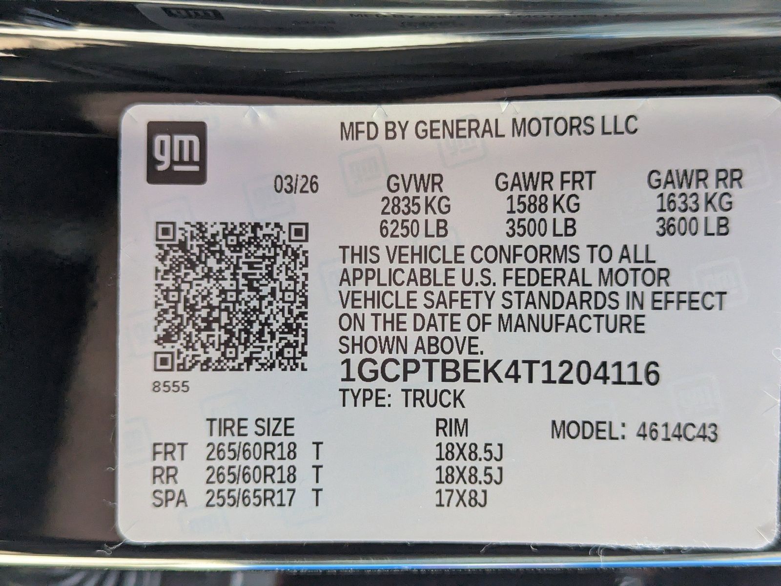 WT CUSTOM PACKAGE includes (PZX) 18 Black aluminum wheels (QIA) 265/60R18 all-season blackwall tires and (RIK) Black badging LPO,LPO BLACK BOWTIE EMBLEM,REAR AXLE 3.42 RATIO,LPO BLACK ASSIST STEPS (dealer-installed),11.3 DIAGONAL ADVANCED COLOR LCD DISPLAY WITH GOOGLE BUILT-IN includes color touch-screen multi-touch display AM/FM stereo Bluetooth streaming audio for music and most phones; featuring wireless Android Auto and Apple CarPlay capability for compatible phones advanced voice recognition in-vehicle apps personalized profiles for infotainment and vehicle settings (STD),LPO BLACK NAMEPLATES (dealer-installed),LPO WT CUSTOM APPEARANCE PACKAGE (dealer-installed) includes (SF8) Hood Decal Package LPO (SFZ) Black Bowtie Emblem LPO (SHQ) Gloss Black Tailgate lettering LPO (VPB) Premier Soft Roll-Up Truck Bed Cover by RealTruck Advantage LPO and (VQO) Black Assist Steps LPO,TIRES 265/60R18 ALL-SEASON BLACKWALL (Requires (PZX) 18 Black aluminum wheels.),WORK TRUCK PREFERRED EQUIPMENT GROUP includes standard equipment,LICENSE PLATE KIT FRONT (will be shipped to orders with ship-to states that require front license plate),LPO HOOD DECAL PACKAGE (dealer-installed),WHEELS 18 X 8.5 (45.7 CM X 21.6 CM) HIGH GLOSS BLACK ALUMINUM,LPO GLOSS BLACK TAILGATE LETTERING (dealer-installed),JET BLACK CLOTH SEAT TRIM,BLACK,TRANSMISSION 8-SPEED AUTOMATIC (STD),ENGINE TURBOMAX (310 hp [231 kW] @ 5600 rpm 430 lb-ft of torque [583 Nm] @ 3000 rpm) (STD),SEATS FRONT BUCKET (STD),LPO PREMIER SOFT ROLL-UP TRUCK BED COVER BY REALTRUCK ADVANTAGE (dealer-installed),Rear Parking Aid,Blind Spot Monitor,Cross-Traffic Alert,Evasion Assist,Lane Departure Warning,Lane Keeping Assist,Front Collision Mitigation,Front Collision Warning,Automatic Highbeams,Turbocharged,Keyless Start,Four Wheel Drive,Tow Hooks,ABS,4-Wheel Disc Brakes,Tires - Front All-Season,Tires - Rear All-Season,Temporary Spare Tire,Automatic Headlights,Automatic Highbeams,Automatic Headlights,Heated Mirrors,Power Mirror(s),Privacy Glass,Keyless Entry,Power Door Locks,AM/FM Stereo,MP3 Capability,Bluetooth Connection,Auxiliary Audio Input,Smart Device Integration,Satellite Radio,Requires Subscription,Bluetooth Connection,Smart Device Integration,WiFi Hotspot,Bucket Seats,Cloth Seats,Pass-Through Rear Seat,Rear Bench Seat,Adjustable Steering Wheel,Steering Wheel Audio Controls,Power Windows,Power Windows,Power Windows,Sliding Rear Window,Power Door Locks,Keyless Entry,Power Door Locks,Cruise Control,Security System,MP3 Capability,Auxiliary Audio Input,A/C,Rear Defrost,Driver Vanity Mirror,Passenger Vanity Mirror,Telematics,Navigation from Telematics,Requires Subscription,Front Collision Mitigation,Front Collision Warning,Cross-Traffic Alert,Traction Control,Stability Control,Daytime Running Lights,Driver Air Bag,Passenger Air Bag,Front Side Air Bag,Front Head Air Bag,Rear Head Air Bag,Passenger Air Bag Sensor,Passenger Air Bag Sensor,Telematics,Requires Subscription,Back-Up Camera,Rear Parking Aid,Blind Spot Monitor,Evasion Assist,Lane Departure Warning,Lane Keeping Assist,Front Collision Warning,Front Collision Warning,Driver Restriction Features,Child Safety Locks,Tire Pressure Monitor,Tire Pressure Monitor