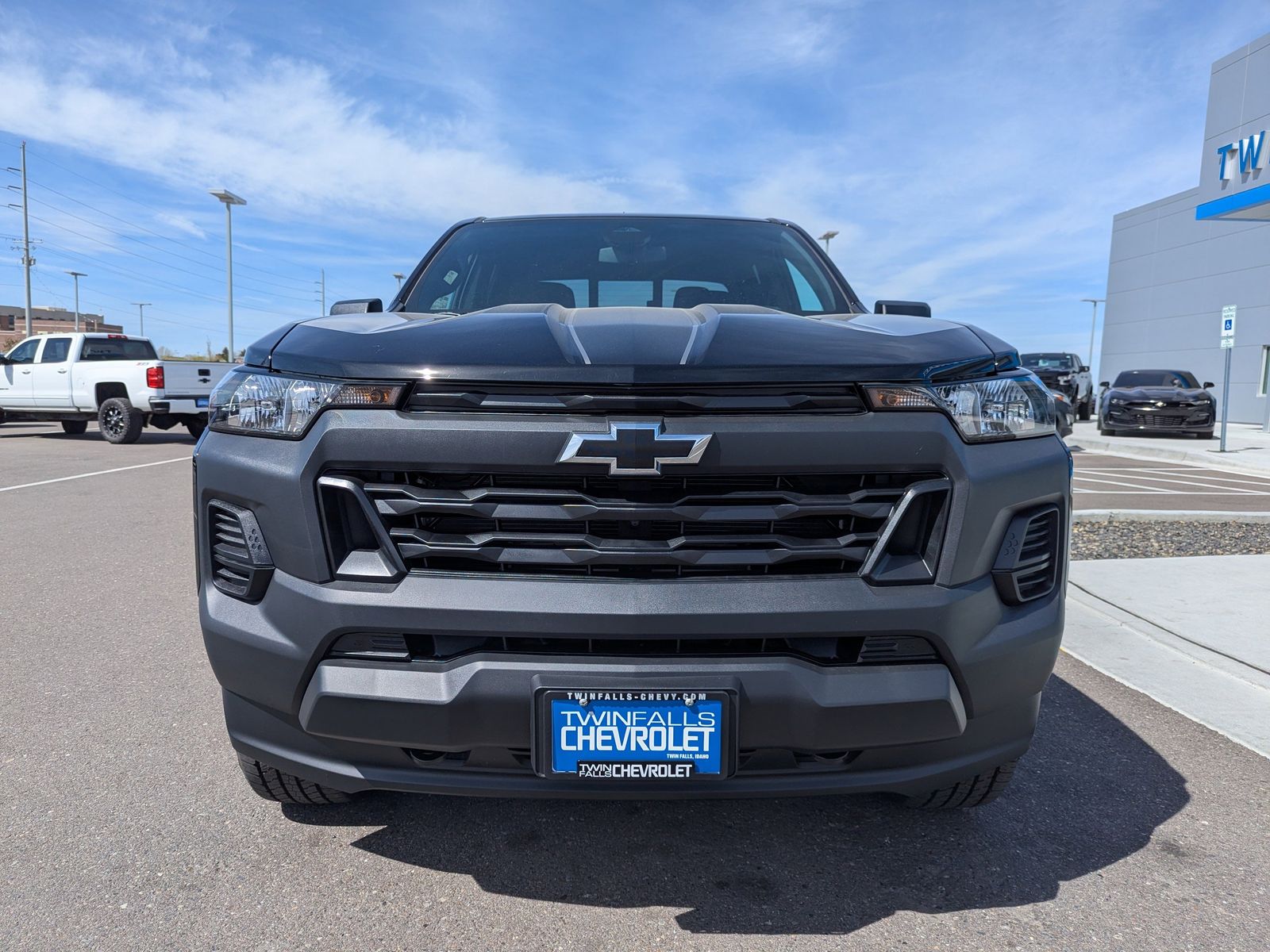 We proudly serve Twin Falls, Magic Valley, Kimberly, Jerome, Boise, Buhl as well as Blaine County, Elmore County and Ada County, Boise County, Canyon County and Lincoln County. Hood Decal Package, Preferred Equipment Group 4WT (Automatic Emergency Braking, Chevy Safety Assist, Following Distance Indicator, Forward Collision Alert, Front Pedestrian and Bicyclist Braking, IntelliBeam Automatic High Beam on/Off, and Lane Keep Assist with Lane Departure Warning), WT Custom Appearance Package (Black Assist Steps, Black Bowtie Emblem, Gloss Black Tailgate Lettering, and Premier Soft Roll-Up Truck Bed Cover), WT Custom Package (Black Nameplates and Wheels: 18 x 8.5 Black High Gloss Aluminum), 4WD, 3.42 Rear Axle Ratio, 4-Way Manual Passenger Seat Adjuster, 4-Wheel Disc Brakes, 6 Speakers, 6-Speaker Audio System Feature, 6-Way Manual Driver Seat Adjuster, ABS brakes, Air Conditioning, AM/FM radio: SiriusXM with 360L, Apple CarPlay/Android Auto, Auto High-beam Headlights, Brake assist, Cloth Seat Trim, Delay-off headlights, Driver door bin, Driver vanity mirror, Dual front impact airbags, Dual front side impact airbags, Electronic Stability Control, Emergency communication system: OnStar, Front anti-roll bar, Front Bucket Seats, Front Center Armrest, Front License Plate Kit, Front wheel independent suspension, Heated door mirrors, Low tire pressure warning, Navigation System, Occupant sensing airbag, Overhead airbag, Panic alarm, Passenger door bin, Passenger vanity mir