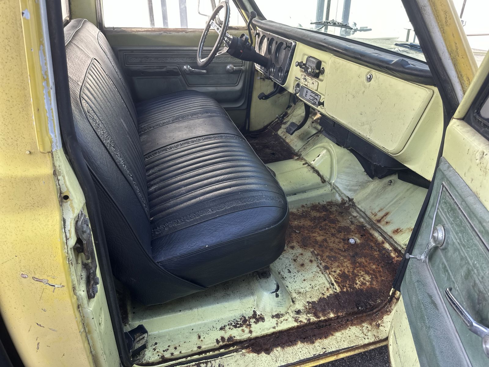 Good old truck with potential. It’s got a 350 that runs well and an automatic transmission. As typical with this generation of truck the floors, rockers and cab corners need replaced. Although, the cab corners may have been replaced previously because they don’t appear as bad as the floors and rockers. I do have replacement metal for them and am willing to negotiate