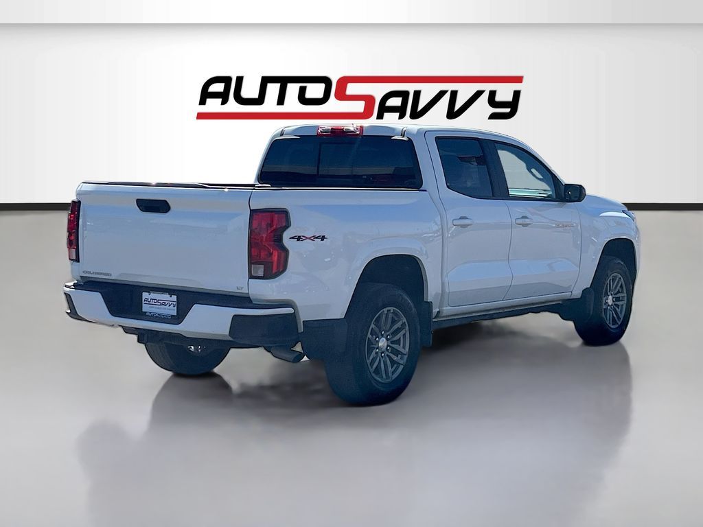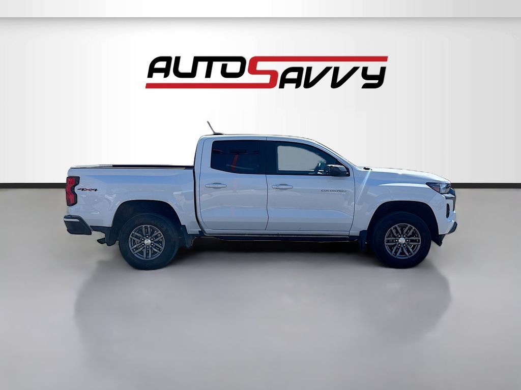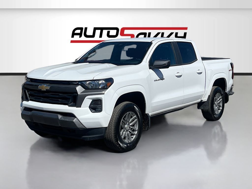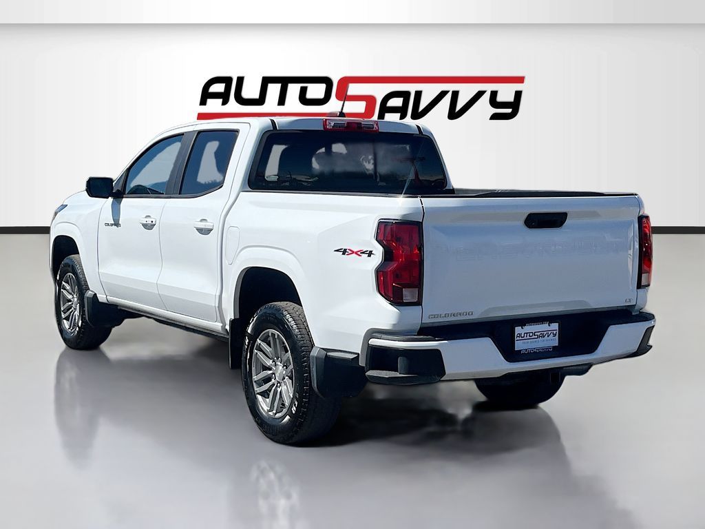 Discover the 2023 Chevrolet Colorado 4WD Crew Cab LT at AutoSavvy Las Vegas, a perfect blend of power and versatility. This Summit White beauty is powered by a robust 2.7L I-4 intercooled turbo engine, delivering an impressive 310 horsepower. With just 44,587 miles on the odometer, this truck is ready for new adventures. Enjoy the convenience of advanced features like Apple CarPlay, Android Auto, and a wireless phone projection system, all displayed on an 11.3-inch diagonal advanced color LCD touchscreen. The interior boasts Jet Black cloth upholstery, dual-zone automatic air conditioning, and a spacious cabin with seating for five. The LT trim includes standard 17-inch Argent Metallic aluminum wheels, ensuring a smooth ride on any terrain. The current status of the title is branded, reflecting AutoSavvy's commitment to transparency and quality assurance. Each vehicle in our inventory undergoes a meticulous inspection process to meet our high standards, ensuring you drive away with confidence. Visit AutoSavvy Las Vegas today to explore the exceptional value and quality of the 2023 Chevrolet Colorado 4WD Crew Cab LT. Experience the AutoSavvy difference and drive home in a vehicle that perfectly combines cutting-edge technology, rugged performance, and unmatched comfort.