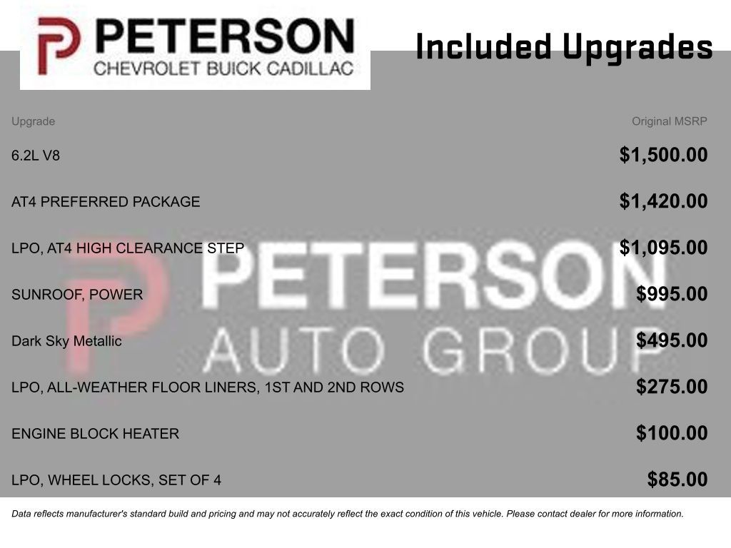 Our AT4 cabin helps you tame tough terrain in comfort with leather power front seats, uplevel rear seats, a leather-wrapped steering wheel, dual-zone automatic climate control, cruise control, remote start, keyless open/ignition, and our Preferred Pack, which includes a powered rear window and premium infotainment upgrades. Those add full-color navigation, wireless charging, and Bose audio to an 8-inch touchscreen, wireless Android Auto/Apple CarPlay, WiFi compatibility, and Bluetooth.