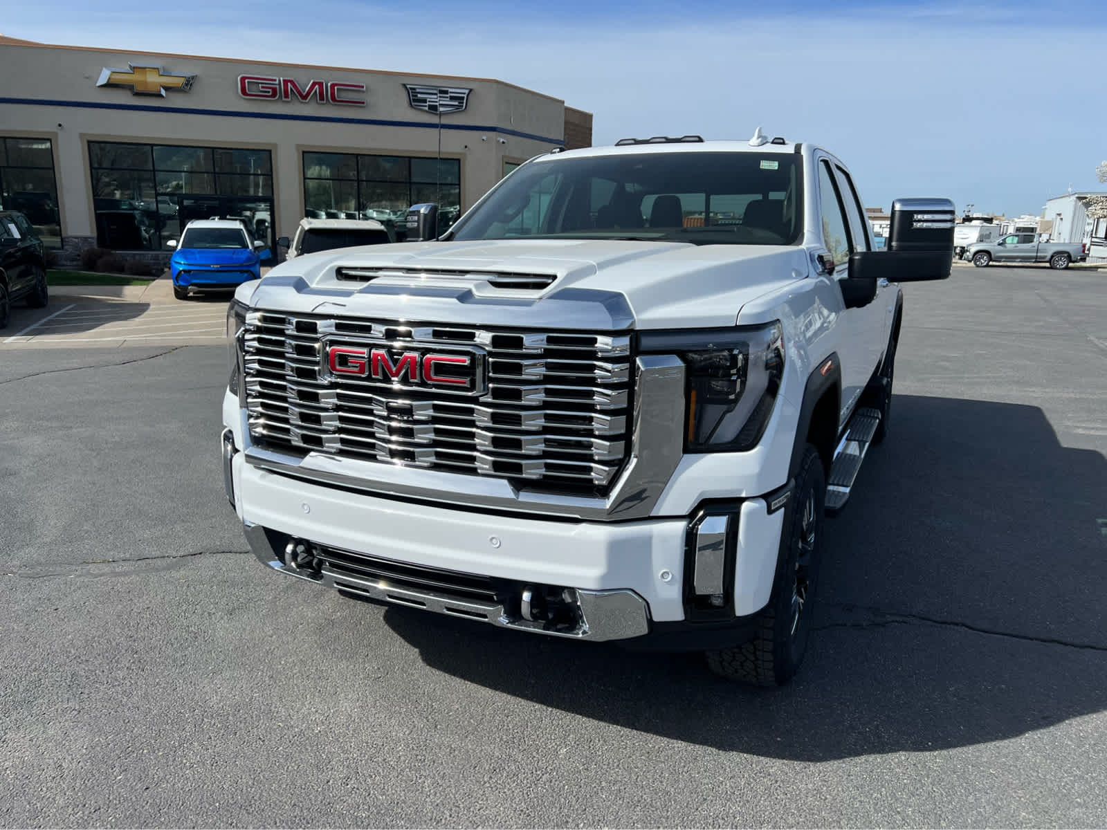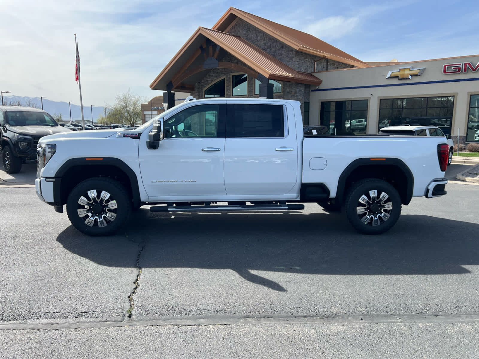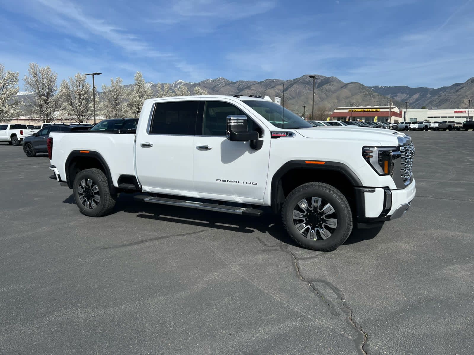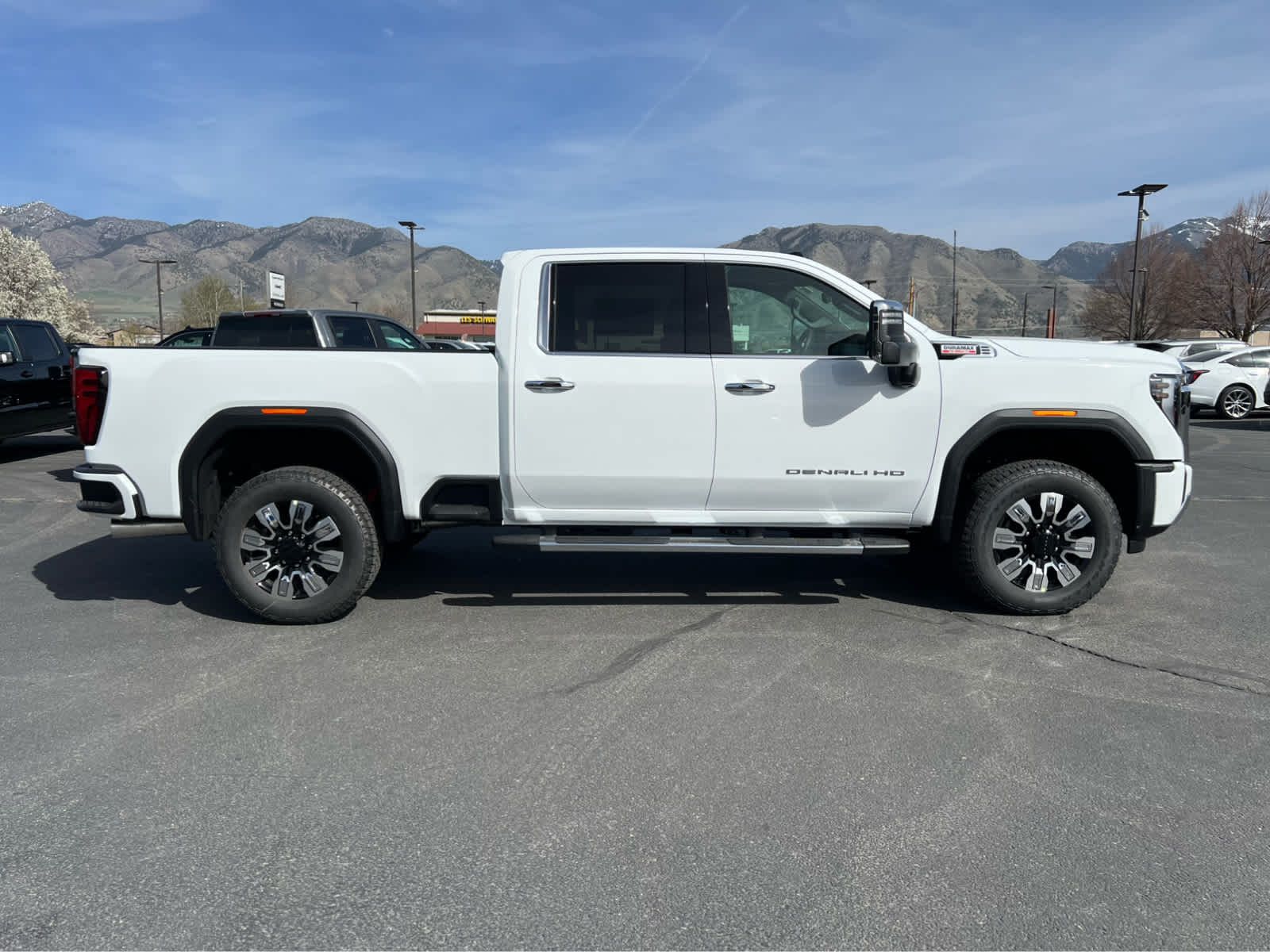 Heated/Cooled Leather Seats, Navigation, Running Boards, Heated Rear Seat, 4WD, Aluminum Wheels, Bed Liner, ENGINE, DURAMAX 6.6L TURBO-DIESEL V8, B20-DIESEL COMPATIBLE. Denali trim, Summit White exterior and Atmosphere/Brownstone interior