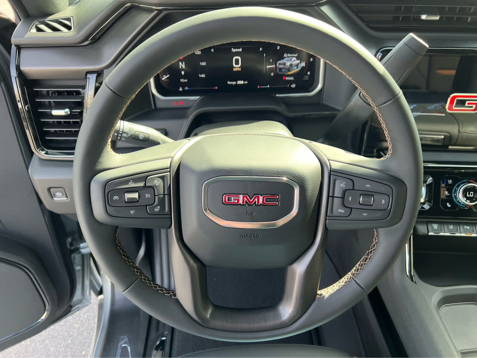 Leather Seats, Heated Driver Seat, Heated Rear Seat, Cooled Driver Seat, Premium Sound System, Satellite Radio, Onboard Communications System, Aluminum Wheels. Keyless Entry, Privacy Glass, Steering Wheel Controls, Heated Mirrors. GMC AT4 with Sterling Metallic exterior and Jet Black with Kalahari accents interior features a 8 Cylinder Engine with 470 HP at 2800 RPM*.