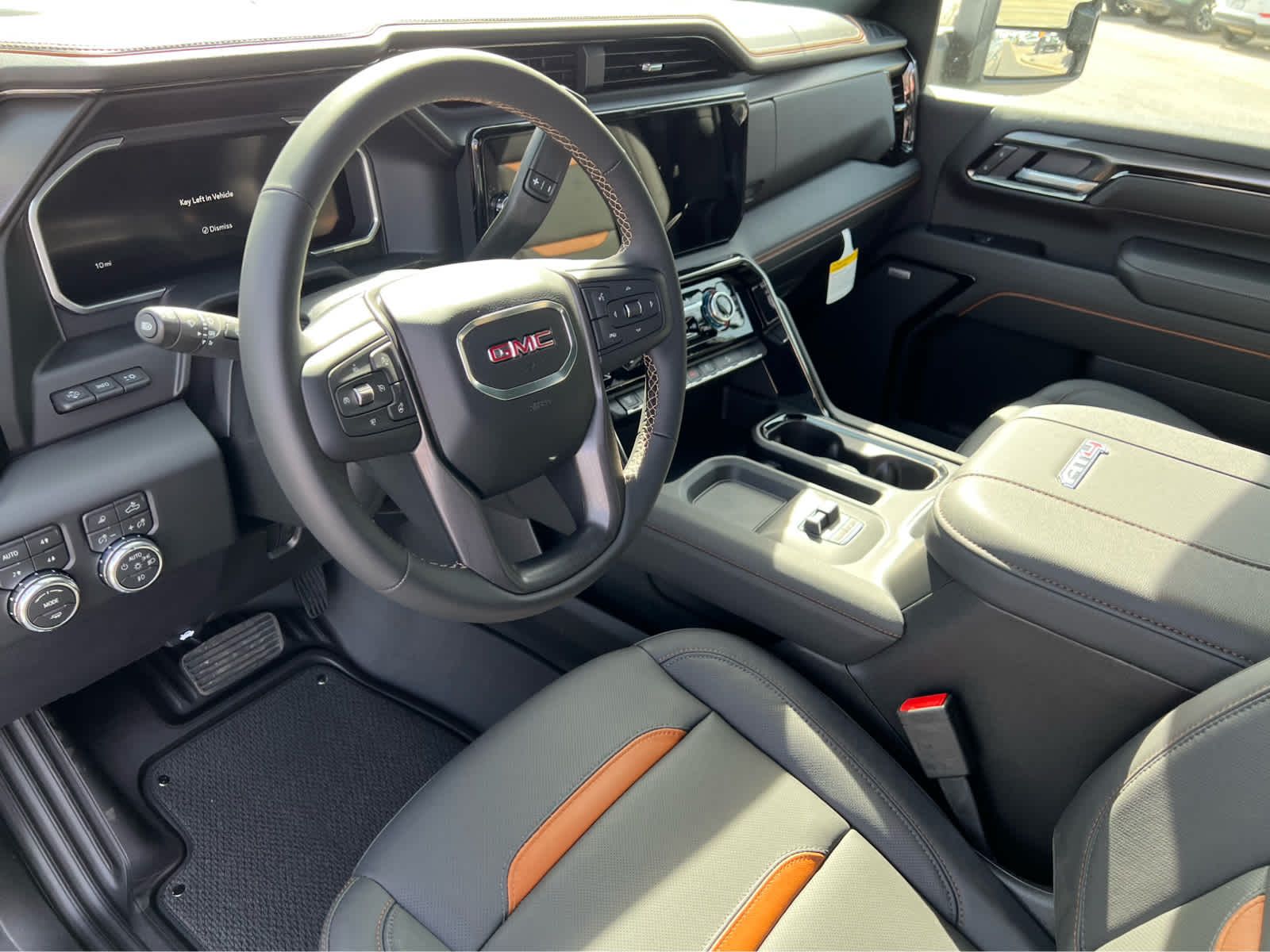 ENGINE, DURAMAX 6.6L TURBO-DIESEL V8, B20-DIESEL COMPATIBLE (470 hp [350.5 kW] @ 2800 rpm, 975 lb-ft of torque [1322 Nm] @ 1600 rpm) (Includes (K05) engine block heater.), ASSIST STEPS, POWER-RETRACTABLE, BLACK includes LED lighting, TECHNOLOGY PACKAGE includes (DRZ) Rear Camera Mirror and (UV6) Multicolor 15 Diagonal Head-Up Display, GOOSENECK / 5TH WHEEL PREP PACKAGE -- Hitch platform to accept Gooseneck or 5th Wheel hitch. Includes hitch platform with tray to accept ball, stamped bed holes with removable caps installed and bed mounted 7-pin trailer harness (similar to UY2 harness). AT4 PREFERRED PACKAGE includes (UG1) Universal Home Remote, (A48) rear sliding power window and (U01) Roof Marker Lamps, AUDIO SYSTEM, 13.4 DIAGONAL PREMIUM GMC INFOTAINMENT SYSTEM with Google built in apps such as navigation and voice assistance, includes color touch-screen, multi-touch display, AM/FM stereo, Bluetooth® streaming audio for music and most phones; featuring wireless Android Auto® and Apple CarPlay® capability for compatible phones. (STD), TRANSMISSION, 10-SPEED AUTOMATIC.