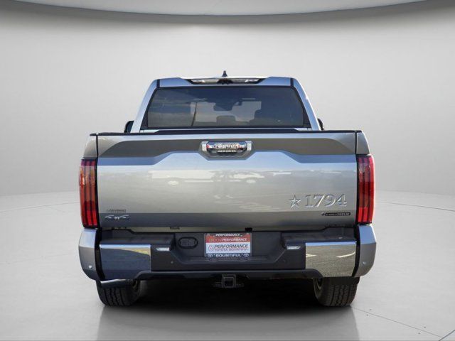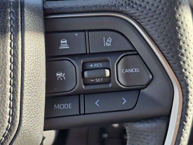 Navigation system: Drive Connect Cloud Navigation (1-year trial subscription),1794 Grade Package,TRD Off-Road Package,12 Speakers,AM/FM radio: SiriusXM,Radio data system,Radio: Premium Audio with JBL,Air Conditioning,Automatic temperature control,Front dual zone A/C,Rear window defroster,Memory seat,Power driver seat,Power steering,Power windows,Remote keyless entry,Steering wheel memory,Steering wheel mounted audio controls,Speed-sensing steering,Traction control,4-Wheel Disc Brakes,ABS brakes,Dual front impact airbags,Dual front side impact airbags,Emergency communication system: Safety Connect (up to 10-year trial subscription),Front anti-roll bar,Front wheel independent suspension,Knee airbag,Low tire pressure warning,Occupant sensing airbag,Overhead airbag,Power moonroof,Brake assist,Electronic Stability Control,Exterior Parking Camera Rear,Auto High-beam Headlights,Delay-off headlights,Front fog lights,Fully automatic headlights,Panic alarm,Security system,Speed control,Auto-dimming door mirrors,Bumpers: body-color,Front and Rear Mud Guards,Heated door mirrors,Non-Skid Spray-on Bed Liner,Power door mirrors,Predator Drop Step,Rear step bumper,Turn signal indicator mirrors,Apple CarPlay/Android Auto,Auto-dimming Rear-View mirror,Compass,Driver door bin,Driver vanity mirror,Front reading lights,Garage door transmitter: HomeLink,Heated and Ventilated Front Bucket Seats,Heated steering wheel,Illuminated entry,Leather Shift Knob,Leather steering wheel,Multi-Terrain Back Monitor,Multimedia Glass Screen Protector,Outside temperature display,Overhead console,Passenger vanity mirror,Rear reading lights,Rear seat center armrest,Tachometer,Telescoping steering wheel,Tilt steering wheel,Trip computer,Voltmeter,Front Bucket Seats,Front Center Armrest,Heated front seats,Heated rear seats,Power passenger seat,Premium Leather Seat Trim,Split folding rear seat,Ventilated front seats,Ventilated rear seats,Passenger door bin,Alloy wheels,Wheels: 20 Black Alloy,Wheels: 20 Machined-Finish Alloy,Rain sensing wipers,Speed-Sensitive Wipers,Variably intermittent wipers,3.31 Axle Ratio,TRD Front Skid Plate