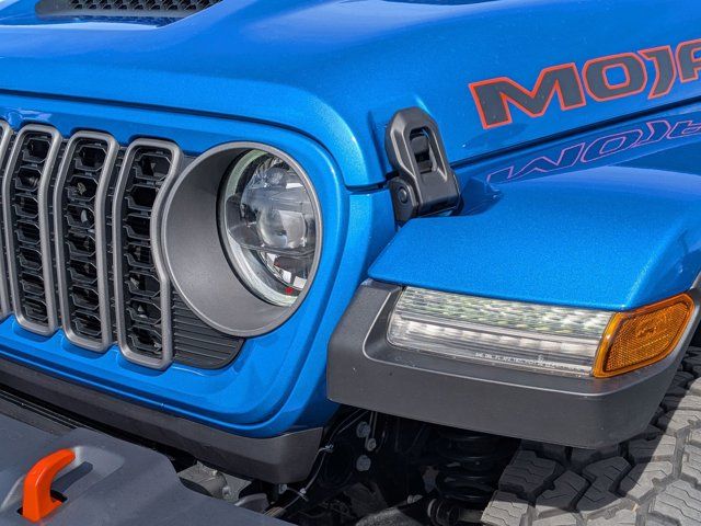 WHEELS: 17 X 7.5 DARK GRAY PAINTED (STD),MOPAR SPRAY IN BEDLINER,TECHNOLOGY GROUP -inc: SiriusXM Radio Service Integrated Off-Road Camera HD Radio Rear View Auto Dim Mirror Bluetooth Wireless Speaker Integrated Voice Command w/Bluetooth Radio: Uconnect 5 Nav w/12.3 Display GPS Navigation GPS Antenna Input SiriusXM w/360L Connected Travel & Traffic Services,TIRES: LT285/70R17C BSW A/T (STD),ENGINE: 3.6L V6 24V VVT UPG I W/ESS (STD),BLACK 3-PIECE HARD TOP -inc: Freedom Panel Storage Bag Rear Window Defroster Rear Sliding Window,ALPINE PREMIUM AUDIO SYSTEM,QUICK ORDER PACKAGE 24D MOJAVE -inc: Engine: 3.6L V6 24V VVT UPG I w/ESS Transmission: 8-Speed Automatic (850RE),TRANSMISSION: 8-SPEED AUTOMATIC (850RE) (STD),MOPAR ALL-WEATHER SLUSH MATS,HYDRO BLUE PEARLCOAT,BLACK PREMIUM CLOTH SEATS W/SPORT BOLSTERS,RADIO: UCONNECT 5 NAV W/12.3 DISPLAY,BODY COLOR RUBICON HIGHLINE FLARE,FRONT LICENSE PLATE BRACKET,CONVENIENCE GROUP -inc: SiriusXM Radio Service Remote Start System SiriusXM w/360L Universal Garage Door Opener Heated Front Seats Heated Steering Wheel,Four Wheel Drive,Locking/Limited Slip Differential,Tow Hitch,Power Steering,ABS,4-Wheel Disc Brakes,Brake Assist,Locking/Limited Slip Differential,Brake Actuated Limited Slip Differential,Aluminum Wheels,Tires - Front All-Terrain,Tires - Rear All-Terrain,Conventional Spare Tire,Tow Hooks,Tow Hooks,Heated Mirrors,Power Mirror(s),Privacy Glass,Intermittent Wipers,Variable Speed Intermittent Wipers,Rollover Protection Bars,Convertible Soft Top,Power Door Locks,Daytime Running Lights,Automatic Headlights,LED Headlights,Fog Lamps,AM/FM Stereo,Satellite Radio,Bluetooth Connection,Requires Subscription,MP3 Capability,Steering Wheel Audio Controls,Auxiliary Audio Input,Bluetooth Connection,Driver Adjustable Lumbar,Driver Adjustable Lumbar,Pass-Through Rear Seat,Rear Bench Seat,Adjustable Steering Wheel,Trip Computer,Power Windows,Keyless Entry,Power Door Locks,Keyless Start,Keyless Entry,Power Door Locks,Cruise Control,Adaptive Cruise Control,Climate Control,Multi-Zone A/C,A/C,Cloth Seats,Bucket Seats,Driver Vanity Mirror,Passenger Vanity Mirror,Driver Illuminated Vanity Mirror,Passenger Illuminated Visor Mirror,Floor Mats,Smart Device Integration,WiFi Hotspot,Smart Device Integration,Smart Device Integration,Power Windows,Power Door Locks,Trip Computer,Security System,Immobilizer,Traction Control,Stability Control,Traction Control,Front Side Air Bag,Telematics,Requires Subscription,Front Collision Mitigation,Tire Pressure Monitor,Driver Air Bag,Passenger Air Bag,Front Head Air Bag,Rear Head Air Bag,Passenger Air Bag Sensor,Child Safety Locks,Back-Up Camera