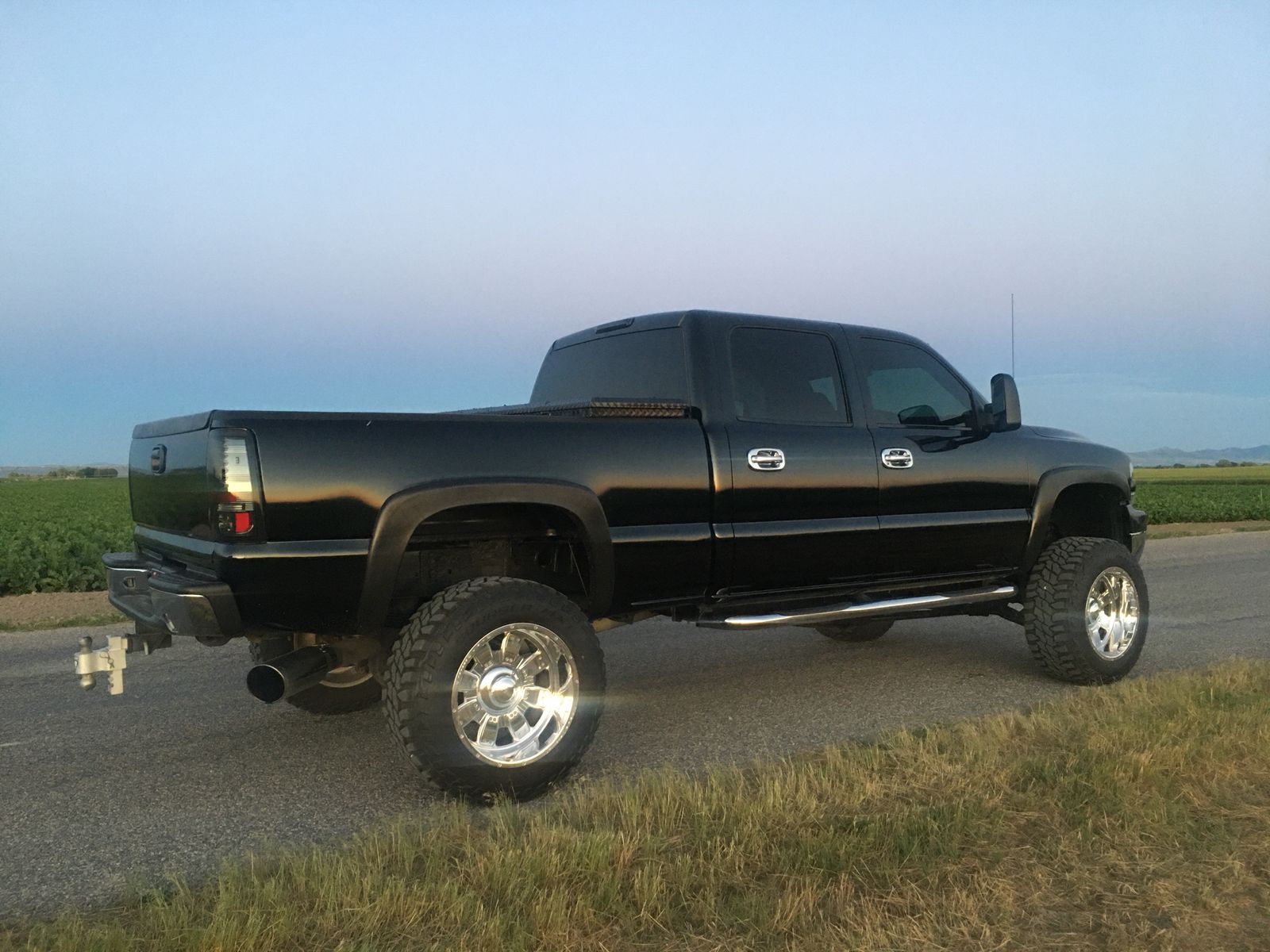 2002 Duramax. This is in great shape. It has had alot of great work done to it. All the piping cold side and hot side have been done, it’s powder coated in fusion purple. Brand new starter, green top interstate batteries, and brand new filters. Has Fass fuel system. 4in exhaust straight pipe with 6 in tip. Recently fully serviced. Every thing works. Truck runs well. A few months ago it did get new ball joints. Brakes are in good condition. Has about 60 percent tread left, tires are starting to cup a little bit. Nice Stereo system with nice sub woofer. Pretty new Katzkins leather seats. The driver side has some wear. This truck is in great shape. The clear coat is starting to peel on the hood and roof as of a few months ago. This truck has been serviced regularly and well taken care of since I’ve owned it. I’ve owned it for 5 years. It has a 6 in lift, 2in wheel spacers on rear along with weld forged aluminum wheels 20x12’s. Has a perfect stance.