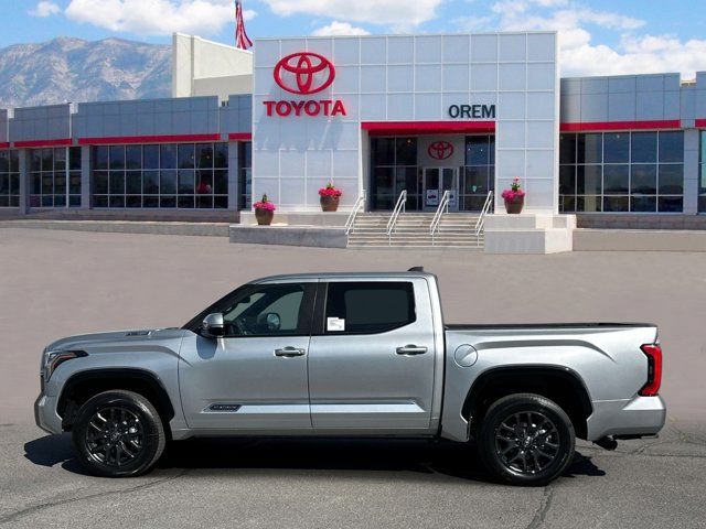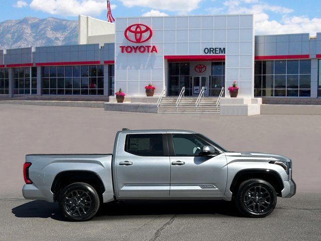 Our impressive 2026 Toyota Tundra Platinum CrewMax 4X4 with the Tow Tech Pack is rugged, refined, and ready for action in Celestial Silver Metallic! Powered by a Twin-TurboCharged 3.4 Liter i-FORCE MAX V6 and an Electric Motor delivering a combined 437hp to a 10 Speed Automatic transmission engineered for hard work. This Four Wheel Drive truck inspires confidence with its responsive suspension, and it sees nearly 23mpg on the highway. Designed to dominate, our Tundra turns heads with a panoramic sunroof, premium LED lighting, fog lamps, a dark chrome grille, gloss black accents, 20-inch wheels, multifunction mirrors, power running boards, a 120V/400W outlet, and a stamped tailgate with a bump-switch release.