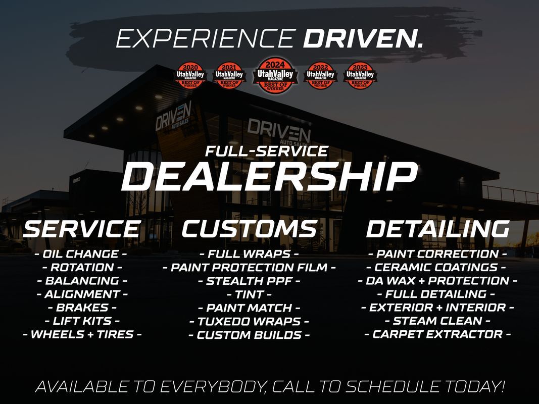 We sell and service all makes and models including Ford, Chevy, GMC, Ram, Toyota, Nissan, and more. Visit drivenauto.com to view our inventory, or call/text us at (801) 477-0895 for a no-pressure experience.