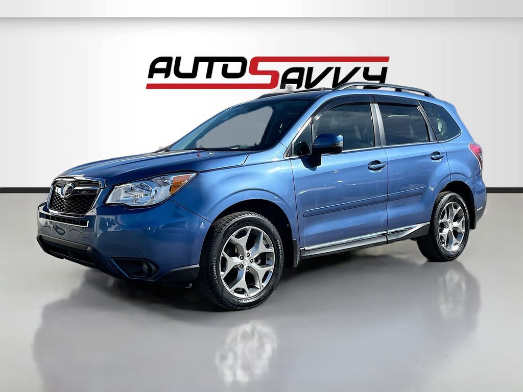 Explore the 2016 Subaru Forester 2.5i Touring at AutoSavvy Lindon, a versatile and feature-packed sport utility vehicle perfect for adventure seekers and families alike. This Quartz Blue Pearl beauty, with just 84,373 miles, offers the perfect blend of style and performance. Under the hood, you'll find a reliable 2.5L H-4 DOHC engine with 170 horsepower, paired with a smooth automatic transmission and all-wheel drive for confident handling in any condition. Enjoy premium features such as leather front seat upholstery, a power moonroof, and a Harman/Kardon premium sound system for an elevated driving experience. The Subaru STARLINK multimedia system with navigation ensures seamless connectivity and entertainment on the go. This 2016 Subaru Forester comes with a branded title, reflecting AutoSavvy's dedication to providing high-quality vehicles at exceptional value. As a Savvy Certified vehicle, it includes a comprehensive 4-month/4,500-mile limited warranty, offering peace of mind with your purchase. Every vehicle at AutoSavvy Lindon undergoes a rigorous inspection to meet stringent safety and performance standards, ensuring reliability and satisfaction. Join the community of savvy buyers who appreciate the unique benefits of purchasing from AutoSavvy. Visit AutoSavvy Lindon today to explore this outstanding Forester and experience the perfect combination of technology, safety, and comfort.
