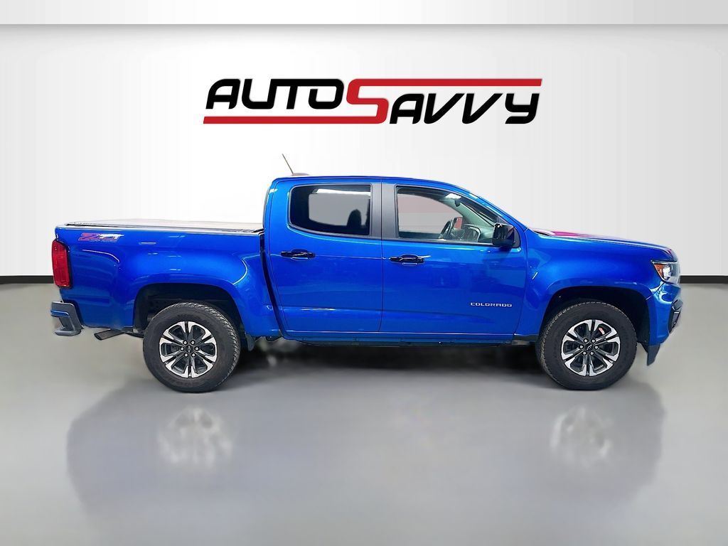 Discover the 2022 Chevrolet Colorado 4WD Crew Cab Short Box Z71 at AutoSavvy Woods Cross, a certified pre-owned pickup that blends power, style, and advanced technology. With only 31,380 miles, this vehicle is ready for any adventure, powered by a robust 3.6L V-6 engine delivering 308 horsepower and paired with an 8-speed automatic transmission. The striking Bright Blue Metallic exterior is complemented by a Black interior featuring cloth and leatherette upholstery. Enjoy premium features like a heated steering wheel, Apple CarPlay, Android Auto, and a premium Chevrolet Infotainment 3 Plus audio system. The Z71 package enhances off-road capabilities with features like an off-road suspension, skid plates, and all-terrain tires. The current status of the title is branded, highlighting AutoSavvy's commitment to transparency and value. As a certified vehicle, this Chevrolet Colorado comes with our 4-month/4,500 Mile Warranty, providing peace of mind and protection. Each vehicle at AutoSavvy undergoes a rigorous inspection to meet high safety and performance standards, ensuring reliability and satisfaction. Visit AutoSavvy Woods Cross today to explore the exceptional capabilities of this 2022 Chevrolet Colorado 4WD Crew Cab Short Box Z71. Join our community of satisfied customers who trust AutoSavvy for quality vehicles with outstanding features and exceptional value. Discover why the Chevrolet Colorado is the perfect choice for those seeking a versatile, powerful, and tech-savvy pickup.