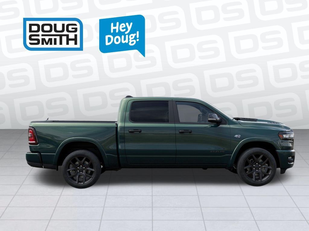 Serrano Green Metallic 2026 Ram 1500 Laramie 4WD 8-Speed Automatic HEMI 5.7L V8 Multi Displacement VVT eTorque Price includes: $1000 - 2026 National Bonus Cash . Exp. 03/31/2026 $3500 - 2026 National Retail Bonus Cash . Exp. 03/31/2026 - Sale Price Includes: $1,500 Trade-In Allowance Incentive Program for customers that trade in a 2015 or newer passenger vehicle with 100,000 miles or less. - Offer Exp. 04/30/2026 - See Doug Smith CDJR for full details.