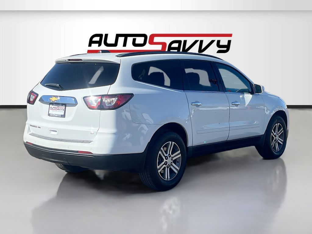 Discover the 2017 Chevrolet Traverse 1LT at AutoSavvy Las Vegas, an ideal choice for families seeking a reliable and spacious SUV. This Summit White beauty is equipped with a robust 3.6L V-6 engine, delivering 281 horsepower and paired with a smooth 6-speed automatic transmission. Its all-wheel-drive capability ensures a confident drive in various conditions, while the 8-passenger seating configuration offers ample space for everyone. Despite its 95,629 miles, this Traverse stands out with its well-maintained Ebony cloth interior and premium features such as an 8-way power driver seat, Bluetooth connectivity, and a rearview camera for enhanced safety. Additional conveniences include remote vehicle start, keyless entry, and rear air conditioning controls, making every journey comfortable and enjoyable. The current status of the title is branded, emphasizing AutoSavvy's dedication to transparency and quality. Each vehicle in our inventory undergoes thorough inspections to meet our high standards, ensuring you drive away with peace of mind. Visit AutoSavvy Las Vegas today to explore the exceptional value and quality of the 2017 Chevrolet Traverse 1LT. Experience the AutoSavvy difference and drive home in a vehicle that perfectly combines space, technology, and safety for your family adventures.