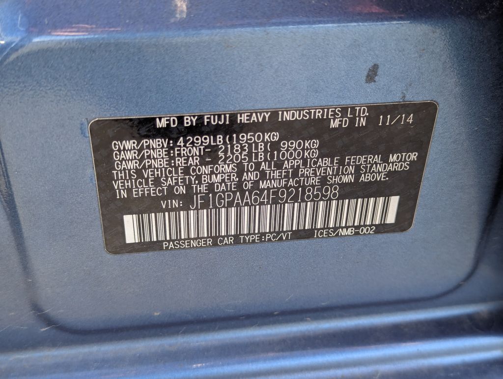 Quartz Blue Pearl 2015 Subaru Impreza 2.0i AWD 5-Speed Manual 2.0L 4-Cylinder SMPI DOHC 16V