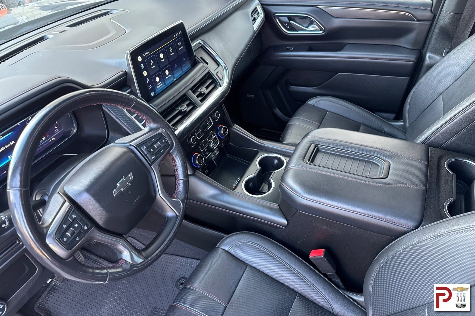 More exclusive details await in our RST cabin, including a panoramic sunroof, Jet Black leather heated power front seats with red stitching that complement our package's heated second and power third rows and a heated leather power steering wheel. Our Tahoe takes connectivity to the next level with a 10.2-inch touchscreen, a 12-inch driver display, wireless Android Auto/Apple CarPlay, WiFi compatibility, wireless charging, Bluetooth, and Bose audio.