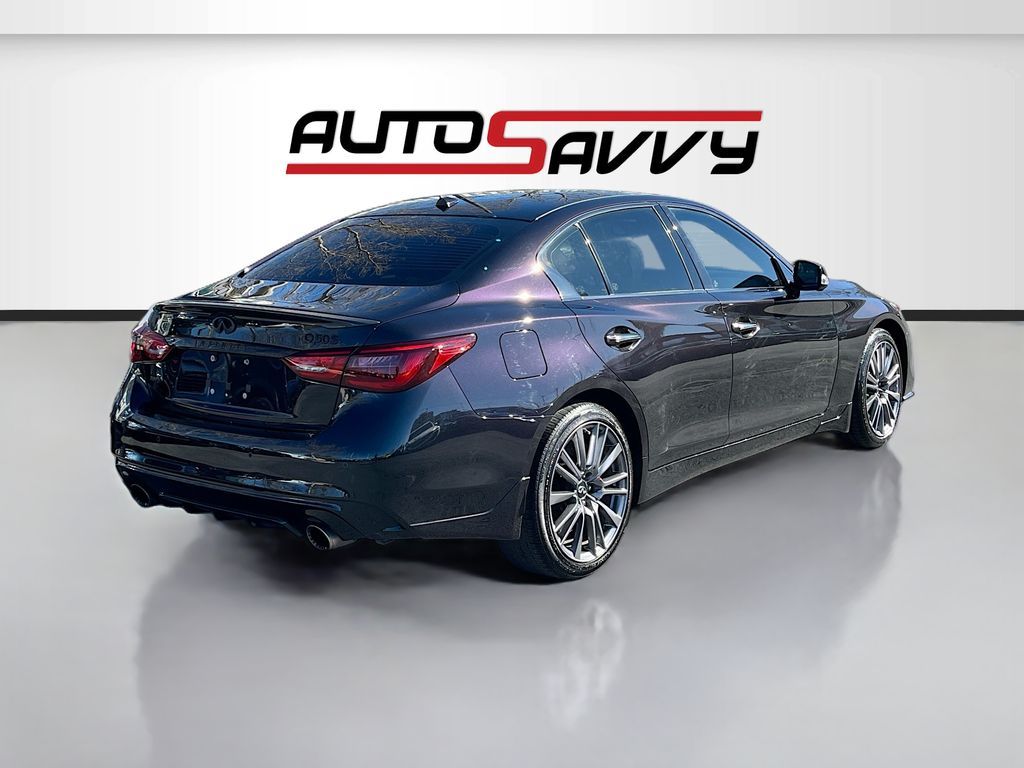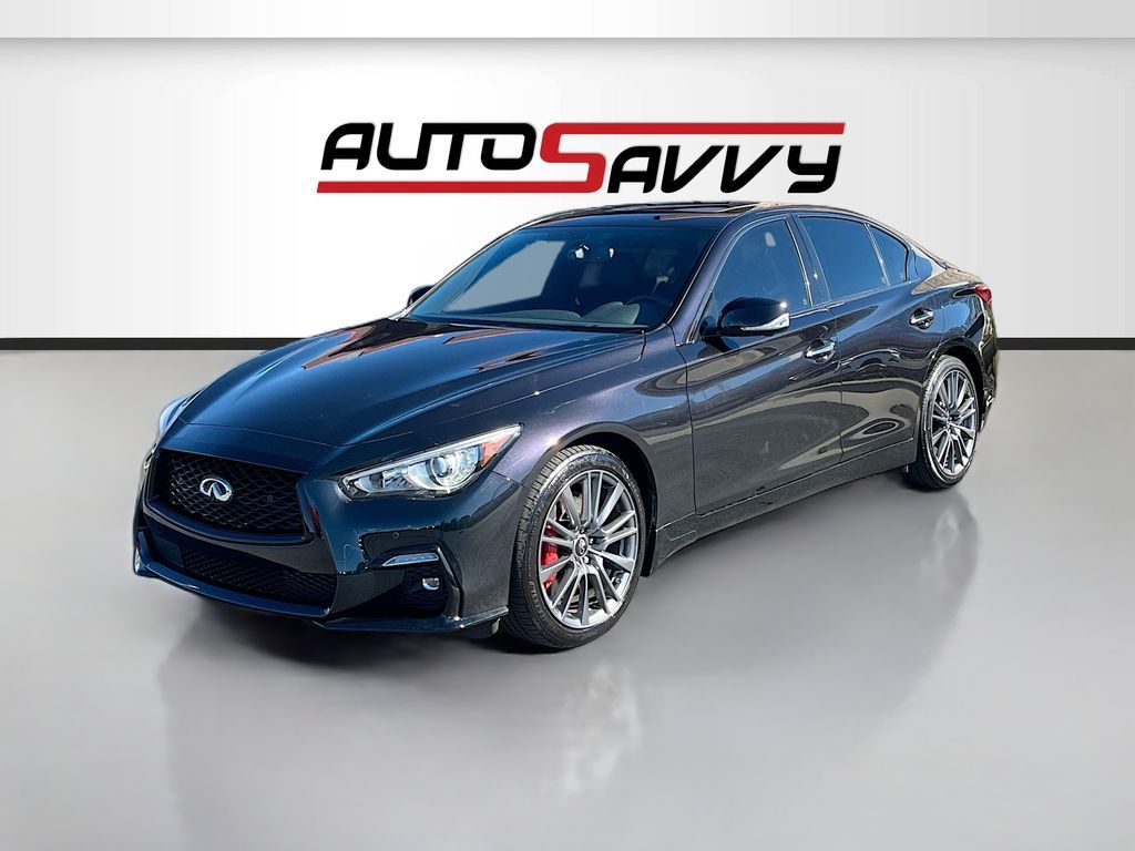 Discover the 2024 INFINITI Q50 RED SPORT 400 AWD, now available at AutoSavvy Draper. This sleek sedan, finished in the eye-catching Black Opal Metallic, offers a thrilling driving experience with its 3.0L V-6 twin-turbo engine, delivering an impressive 400 horsepower. With just 25,702 miles, this vehicle combines performance and efficiency, achieving 19 city and 26 highway MPG. The luxurious interior features quilted semi-aniline leather-appointed seating, a power moonroof, and heated front sport bucket seats for ultimate comfort. Advanced technology includes a Bose Performance Series sound system with 16 speakers, INFINITI InTouch navigation, and a suite of safety features like adaptive cruise control, lane departure warning, and blind spot monitoring. This 2024 INFINITI Q50 carries a branded title, reflecting AutoSavvy Draper's commitment to offering high-quality vehicles at exceptional value. Despite its branded status, this sedan has undergone a meticulous inspection to ensure it meets top performance and reliability standards. As a Savvy Certified vehicle, it includes a 4-month/4,500-mile warranty, providing you with additional peace of mind. Visit AutoSavvy Draper today to experience the perfect blend of luxury, technology, and performance in the INFINITI Q50 RED SPORT 400 AWD. Join our community of savvy buyers who trust AutoSavvy for their automotive needs and enjoy an unparalleled buying experience where quality meets value.