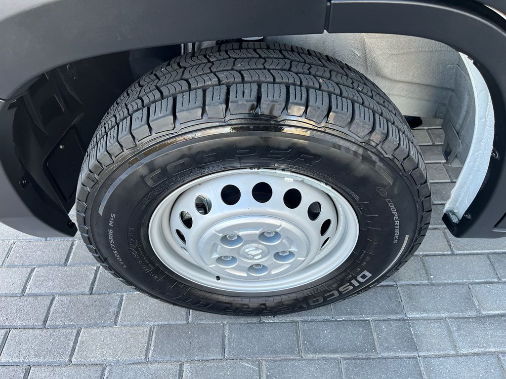 Convenience Group: Exterior Mirrors with Heating Element; Power Folding/heated Mirrors; Exterior Mirrors with Supplemental Signals; Power-Folding Mirrors; Front Fog Lamps; Power Adjust Mirrors; Rear Cargo LED Lamp; Power-Adjustable Convex Aux Mirrors; Adaptive Cruise Control with Stop and Go; Exterior Mirrors with Heating Element; Power Folding/heated Mirrors; Exterior Mirrors with Supplemental Signals; Power-Folding Mirrors; Front Fog Lamps; Power Adjust Mirrors; Rear Cargo LED Lamp; Power-Adjustable Convex Aux Mirrors,Quick Order Package 22B Tradesman with Passenger Seat: 4-Way Manual Adjust Front Passenger Seat; Passenger Bucket Seat,MOPAR Cargo Compartment Floor Mat,Full Size Spare Tire,Adaptive Cruise Control with Stop and Go,Forward Collision Warning-Plus,Pedestrian/Cyclist Emergency Braking,ParkView rear mounted camera,Predictive brake assist system,Drowsy Driver Detection,Traffic Sign Recognition,Immobilizer,Digital/analog instrumentation display,Crosswind Assist electronic stability control system with anti-roll,Hill start assist,Front fog lights,4 airbags,Driver front impact airbag,Seat mounted side impact driver airbag,Curtain first-row overhead airbags,Bluetooth handsfree wireless device connectivity,Apple CarPlay/Android Auto smart device wireless mirroring,4G LTE Wi-Fi Hot Spot mobile hotspot internet access,Mobile app access,Cloth front seat upholstery,Driver seat with 4-way directional controls,Front passenger seat with 4-way directional controls,Manual telescopic steering wheel,Manual climate control,Keyfob trunk control,Adaptive cruise control with stop and go,Cruise control with steering wheel mounted controls,Push-button,Smart key with push button start,Heated driver and passenger side door mirrors,Power folding door mirrors,Over the air updates,Auto-locking doors,Exterior temperature display,7 inch primary display,Primary monitor touchscreen,Bluetooth wireless audio streaming,Uconnect external memory control,Internet radio capability,Pentastar 3.6L V-6 DOHC, variable valve control, regular unleaded, engine with 276HP,Pentastar 3.6L V-6 DOHC,TorqueFlite 9-speed automatic,Tow/Haul Mode selectable mode transmission,Transmission electronic control,Sequential shift control,Automatic,Trailer sway control,Wheel hub covers,16 x 6-inch front and rear silver steel wheels,LT225/75QR16 AS BSW front and rear tires