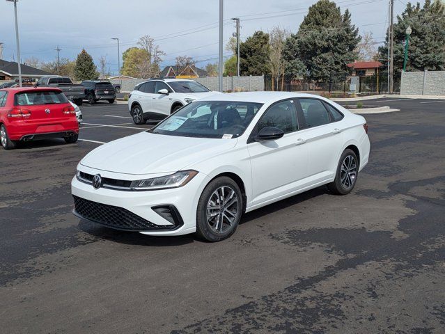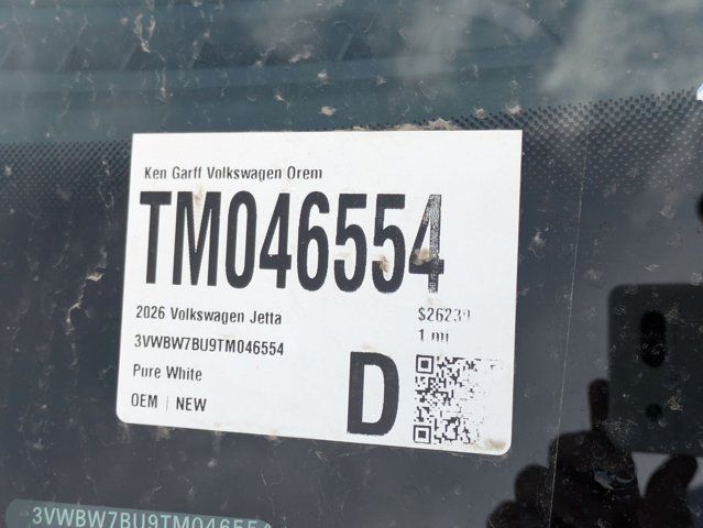 Pure White 2026 Volkswagen Jetta 1.5T Sport FWD 8-Speed Automatic with Tiptronic 1.5L I-4 DI DOHC Turbocharged Heavy Duty Trunk Liner with VW CarGo Blocks, Rubber Monster Mats Kit (set of 4), VW Care, 4 Speakers, 4-Wheel Disc Brakes, ABS brakes, Active Blind Spot Monitor, Air Conditioning, Alloy wheels, Auto-dimming Rear-View mirror, Automatic temperature control, Brake assist, Bumpers: body-color, Cloth Seat Trim, Delay-off headlights, Driver door bin, Driver vanity mirror, Dual front impact airbags, Dual front side impact airbags, Electronic Stability Control, Emergency communication system: VW Car-Net Safe & Secure 5-year, Exterior Parking Camera Rear, Front anti-roll bar, Front Bucket Seats, Front Center Armrest, Front dual zone A/C, Front wheel independent suspension, Fully automatic headlights, Heated door mirrors, Heated Front Seats, Heated front seats, Illuminated entry, Leather Shift Knob, Leather steering wheel, Low tire pressure warning, Occupant sensing airbag, Outside temperature display, Overhead airbag, Overhead console, Panic alarm, Passenger door bin, Passenger vanity mirror, Power door mirrors, Power steering, Power windows, Radio data system, Radio: MIB3 Composition Color with 8 Touchscreen, Rain sensing wipers, Rear anti-roll bar, Rear reading lights, Rear seat center armrest, Rear window defroster, Remote keyless entry, Speed control, Speed-sensing steering, Split folding rear seat, Steering wheel mounted audio controls, Tachometer, Telescoping steering wheel, Tilt steering wheel, Traction control, Trip computer, Variably intermittent wipers, Wheels: 17 2-Tone Machined Alloy, IQ DRIVE, Heavy Duty Trunk Liner with VW CarGo Blocks, Rubber Monster Mats Kit (set of 4), VW Care.Recent Arrival! 29/40 City/Highway MPG $1,500 Financing Discount Included in all Discounts. Must allow Ken Garff VW to arrange financing. Must finance a minimum of 90% of MSRP. Not Valid with 0% or other subvented interest rates. Remaining Discounts are a Combination of Ken Garff Discounts and Remaining Manufacturer Rebates and Incentives. See dealer for complete details and limitations. $1000 - Customer Bonus. Exp. 04/30/2026