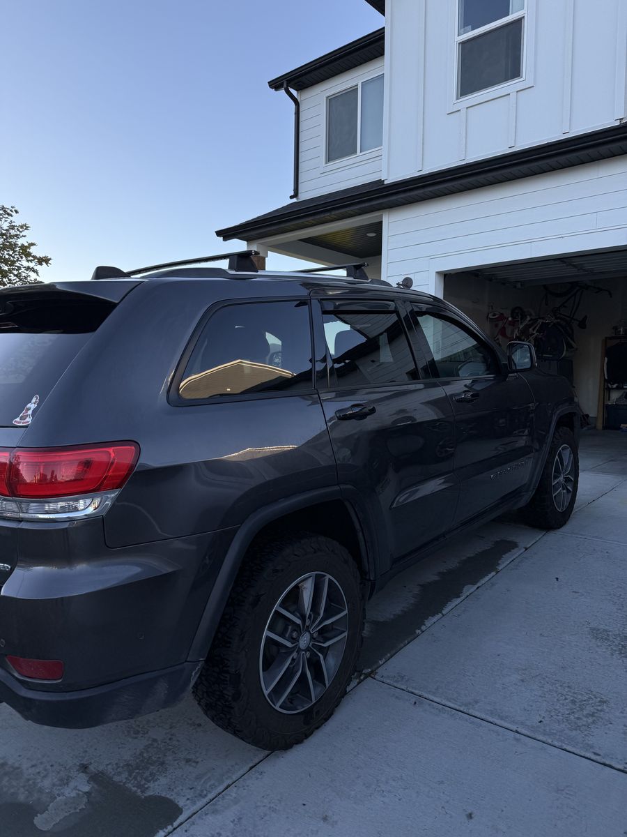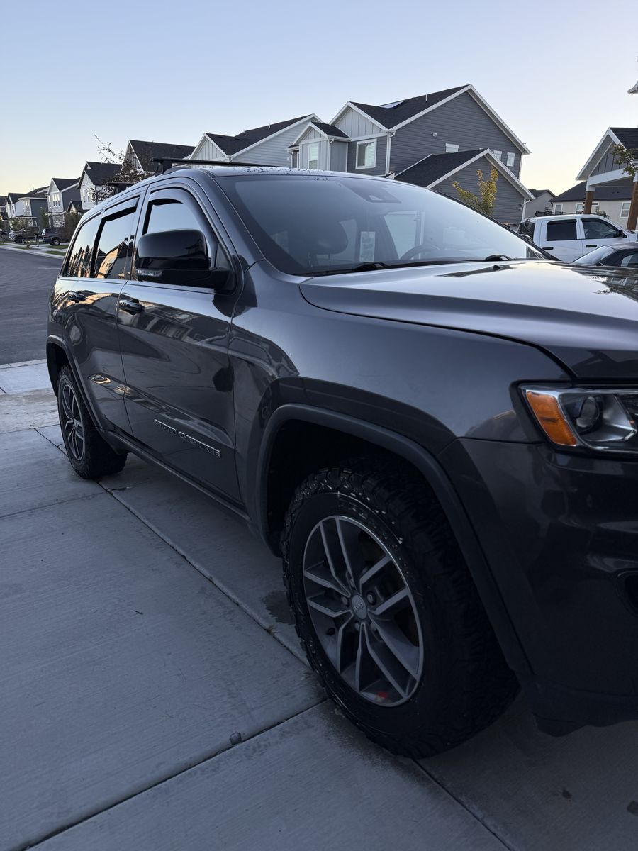 2018 Jeep Grand Cherokee with premium rims and tires. 94,000 miles. Black out chrome delete kit, premium Jeep floor mats, full leather interior, locking roof rack, rear view camera and heated seats. This Jeep is loaded and in excellent condition.