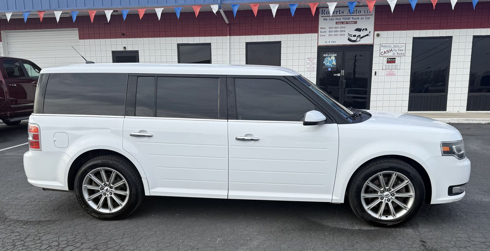 2015 FORD FLEX LIMITED AWD SUV WITH 7 PASSENGER SEATING. 3.5 V6 WITH SMOOTH SHIFTING AUTOMATIC TRANSMISSION. CLEAN TITLE. SERVICED WITH NEW OIL AND FILTER. PASSED IM INSPECTION AND IS READY TO GO. OPTIONS INCLUDE LEATHER INTERIOR. POWER WINDOWS/LOCKS/MIRRORS/SEAT. PS,PB,TILT,CRUISE,COLD AC, AUTOMATIC REAR OPENING HATCH. NAVIGATION. NICE WHEELS AND EXCELLENT TIRES. GREAT SUV FOR THE FAMILY THAT WILL GET YOU ANYWHERE YOU NEED TO GO. PRICED TO SELL AT $5795.00 CALL SCOTT AT 801-891-3914 OR MIKE AT 801-891-3913