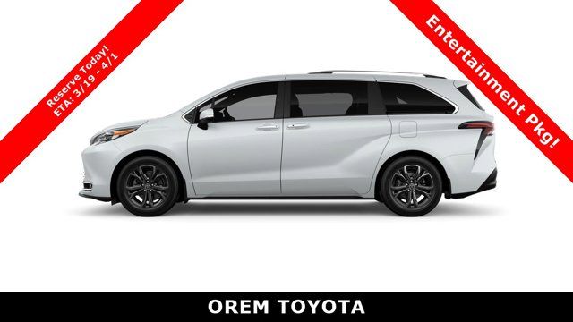 VACUUM & COOLER, T155/80R17 TEMPORARY SPARE TIRE, REAR SEAT ENTERTAINMENT -inc: entertainment center w/11.6 1080p HD display, HDMI input, remote and 2 wireless headphones, REAR BUMPER APPLIQUE (TMS), PREMIUM PAINT, PLATINUM PACKAGE, MULTIMEDIA SCREEN PROTECTOR - GLASS (TMS), MUDGUARDS (TMS), INTELLIGENT INSIDE REAR VIEW MIRROR -inc: HomeLink universal transceiver, ILLUMINATED DOOR SILLS (TMS). This Toyota Sienna has a powerful Gas/Electric I-4 2.5 L/152 engine powering this Variable transmission.*These Packages Will Make Your Toyota Sienna Platinum The Envy of Your Friends BODY SIDE MOLDING (TMS), ALL WEATHER FLOOR MATS W/VC (TMS), 1500W INVERTER OUTPUT -inc: 2 120V AC outlets, Wireless Phone Connectivity, Window Grid And Roof Mount Diversity Antenna, Wheels: 18 Two-Tone Alloy, Valet Function, Turn-By-Turn Navigation Directions, Trunk/Hatch Auto-Latch, Trip Computer, Transmission: CVT, Transmission w/Sequential Shift Control, Toyota Safety Sense P (TSS-P), Tires: P235/60R18, Tire Mobility Kit, Tailgate/Rear Door Lock Included w/Power Door Locks, Strut Front Suspension w/Coil Springs, Smart Device Integration, Single Stainless Steel Exhaust, Side Impact Beams. Stop By Today *For a must-own Toyota Sienna come see us at Orem Toyota, 1400 S. Sandhill Rd, Orem, UT 84058. Just minutes away!