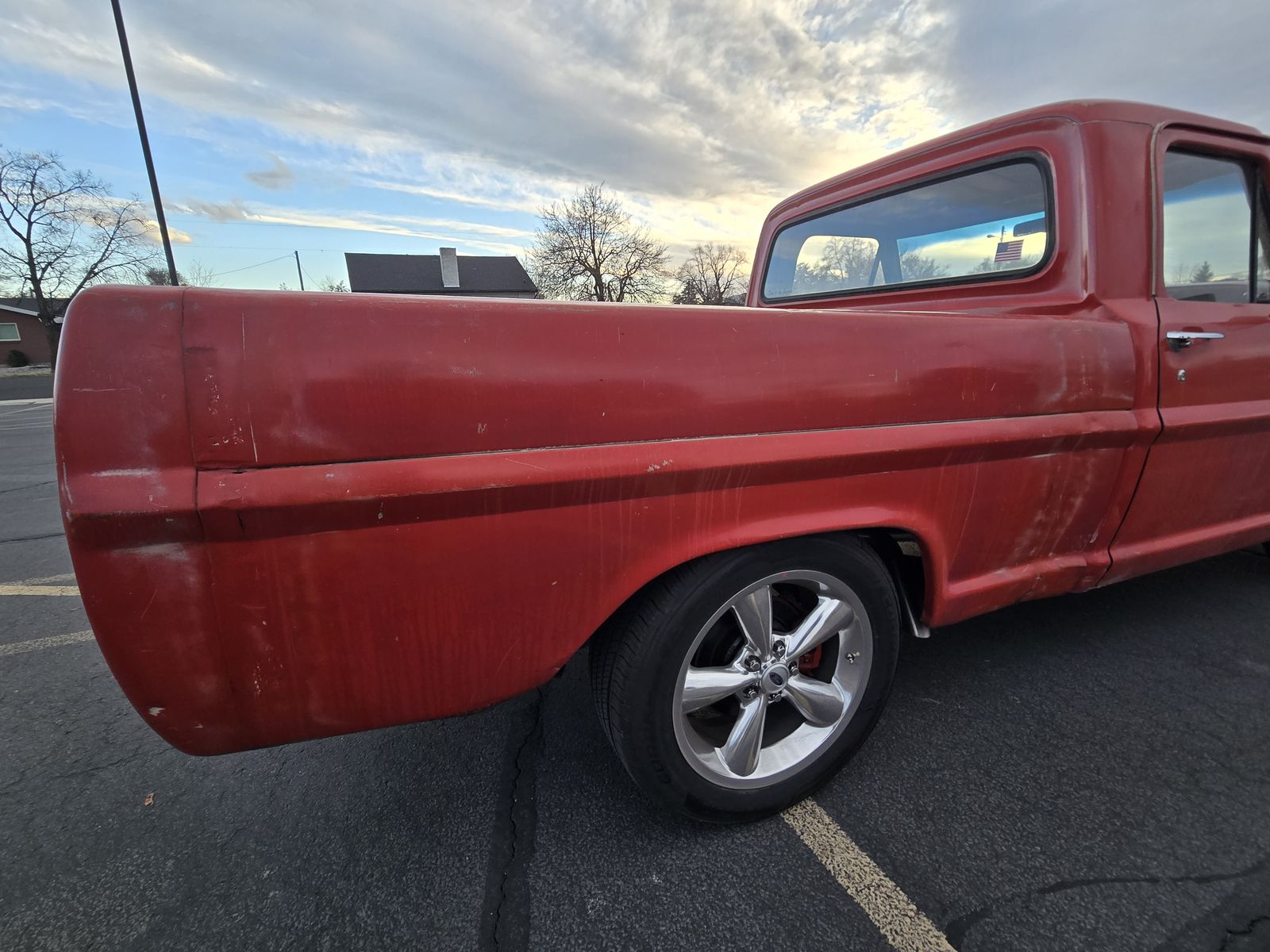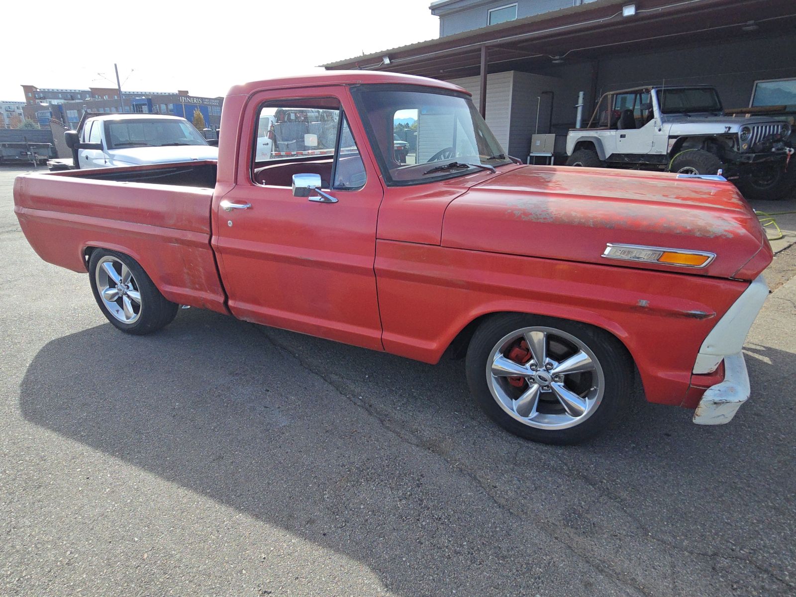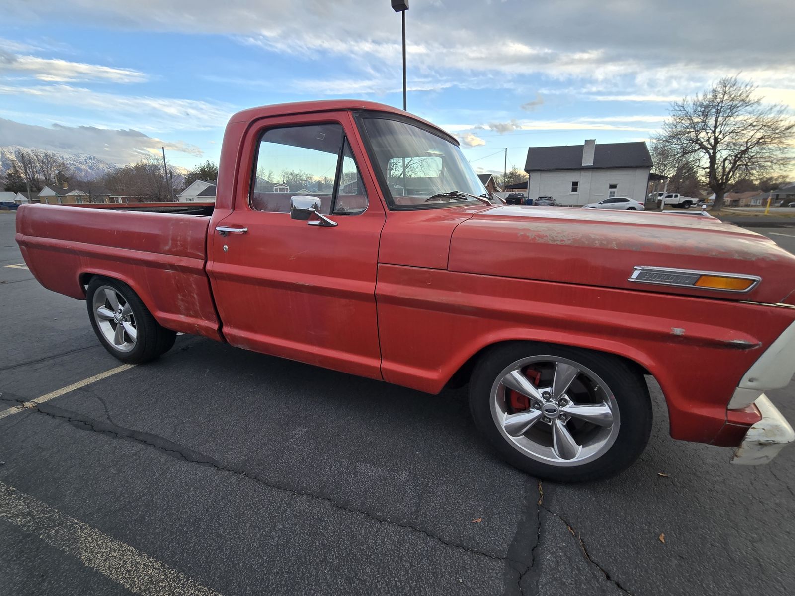 1967 Ford F100 truck body on a 2003 Crown Vic chassis, frame, running gear. 4.6 L V8 with the 4 speed auto and posi rear end. This truck runs, drive awesome. I bought this half done and had it completed. There are still a few thing to finish, the tail lights don't work and most gauges don't. The bed was cut down to resemble a short bed. I have driven it a lot on the freeway and around town. Like i said there are a few things still to work on but it drive and shifts, brakes good. I have the title in hand.