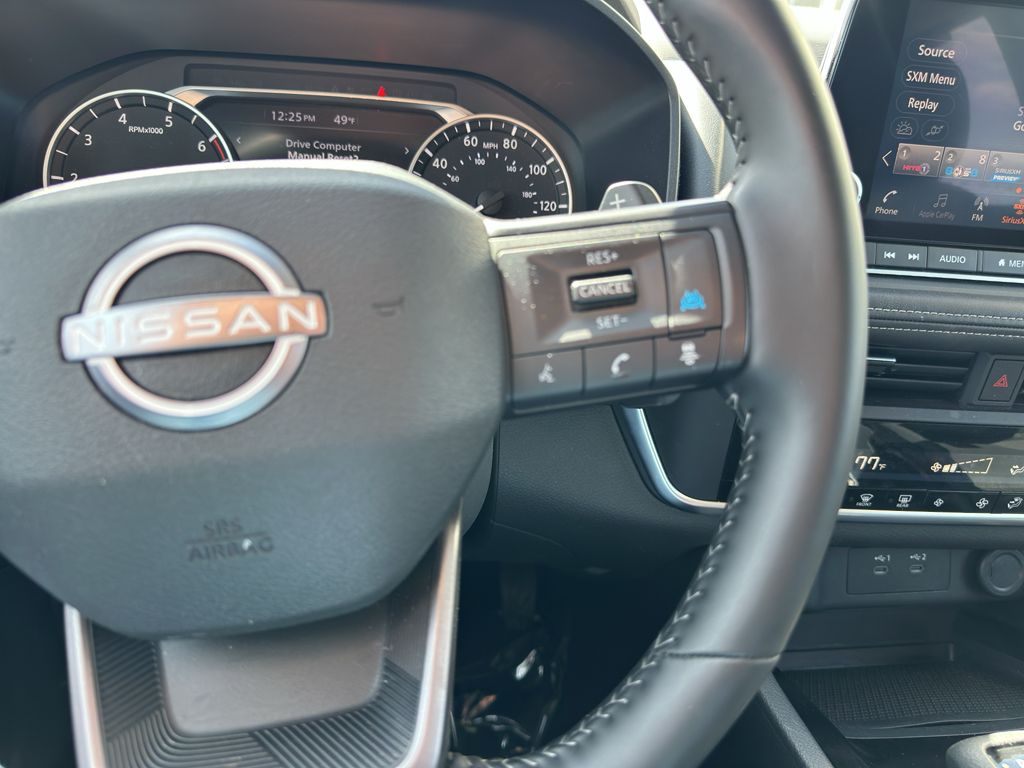 Floor Mats with 1-Piece Cargo Area Protector,Android Auto and Apple CarPlay smart device mirroring,ProPILOT Assist hands-on cruise control,Automatic Emergency Braking with Pedestrian Detection (P-AEB),ProPILOT Emergency Stop with e-call unresponsive driver assist,Wi-Fi Hotspot mobile hotspot internet access,RearView Monitor rear mounted camera,Intelligent Lane Intervention (I-LI),Blind Spot Intervention (BSI) / Blind Spot Warning (BSW),Rear Cross Traffic Alert (RCTA) collision mitigation,Intelligent Cruise Control (ICC) w/Full Speed Range and Hold,Predictive brake assist system,Cruise control with steering wheel mounted controls,Power liftgate rear cargo door,Keyfob remote start,Primary monitor touchscreen,Driver seat power reclining, lumbar support, cushion tilt, fore/aft control and height adjustable control,Intelligent All-Wheel Drive automatic full-time AWD,VC-Turbo 1.5L I-3 gasoline direct injection, DOHC, CVTCS variable valve control, intercooled turbo, regular unleaded, engine with 201HP,VC-Turbo 1.5L I-3 DOHC,Automatic Emergency Braking with Intersection Assist forward collision mitigation with left turn assist,Driver Attention Alert (DAA),Rear pedestrian detection prevention,Intelligent Key with hands-free access and push button start,Push-button,Automatic brake hold,Bluetooth wireless audio streaming,Dual-zone front climate control,High Beam Assist (HBA) auto high-beam headlights,Immobilizer,NissanConnect Services vehicle tracker,Selectable Terrain Modes,Active Noise Cancellation (ANC) active noise cancellation,NissanConnect Services vehicle integrated emergency SOS system,Bluetooth handsfree wireless device connectivity,External memory control,Vehicle Dynamic Control (VDC) electronic stability control system,Hill Start Assist (HSA),Heated rear wiper park,Automatic climate control,Rear Door Alert rear seat check warning,Rear Sonar System rear parking sensors,LED daytime running lights,LED brake lights,Manual reclining rear seats,Manual rear child safety door locks,Mobile app access,Heated driver and passenger side door mirrors,Gauge cluster display size: 7.00,Manual tilting steering wheel,Manual telescopic steering wheel