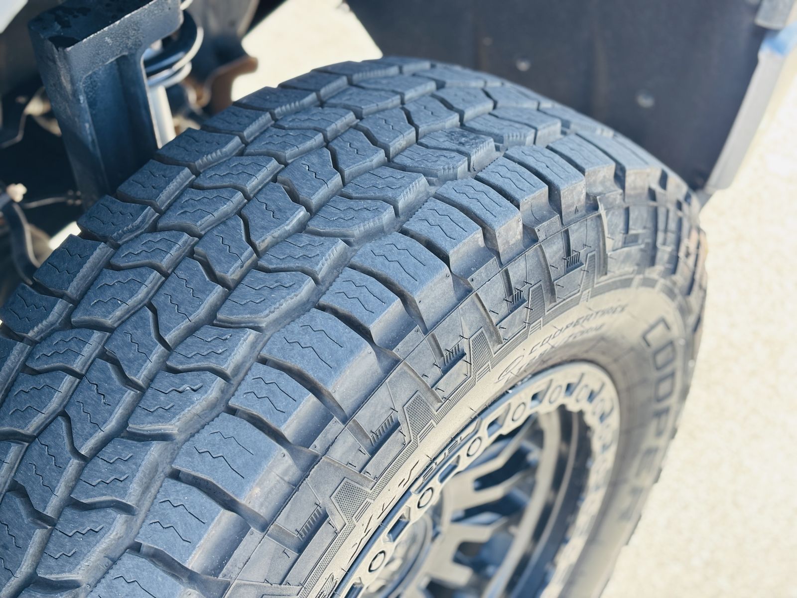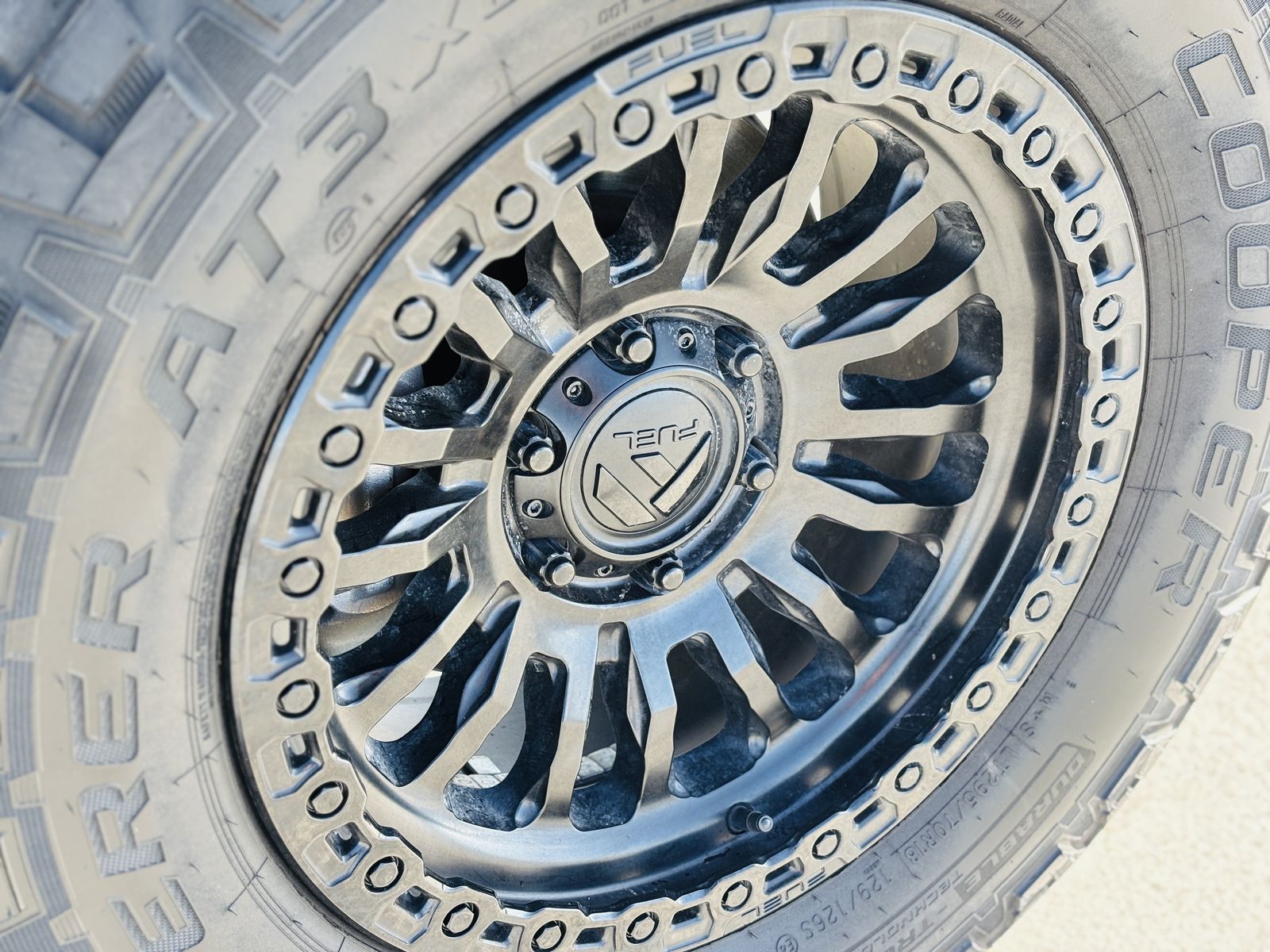 Alloy wheels with all-terrain tires.