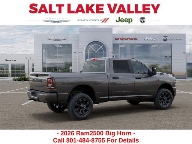 Get the job done and have fun doing it with the new Ram 2500 from Salt Lake Valley CDJR! Power, durability, and innovation come together in every Ram truck. Whether you’re working hard or exploring Utah’s backroads, the 2500 is built to handle it all. Call us today at 801-484-8755 to schedule a time to check it out! 2026 Ram 2500 Big Horn Granite Crystal Metallic Clearcoat 6.7L I6