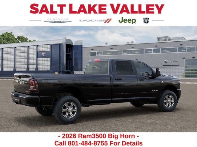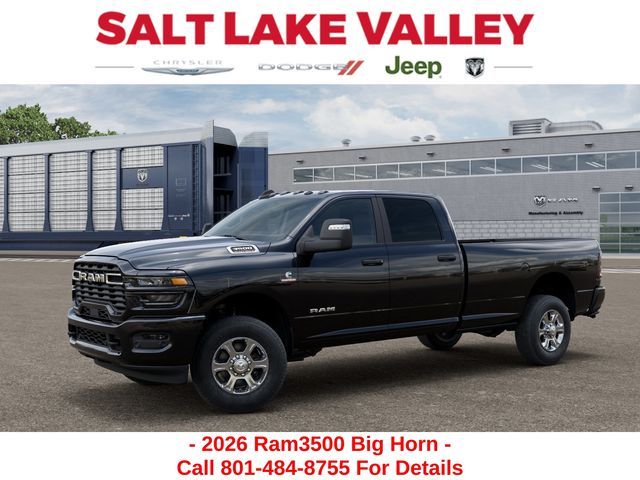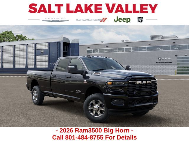 Get the job done and have fun doing it with the new Ram 3500 from Salt Lake Valley CDJR! Power, durability, and innovation come together in every Ram truck. Whether you’re working hard or exploring Utah’s backroads, the 3500 is built to handle it all. Call us today at 801-484-8755 to schedule a time to check it out! 2026 Ram 3500 Big Horn Diamond Black Crystal Pearlcoat 6.7L I6