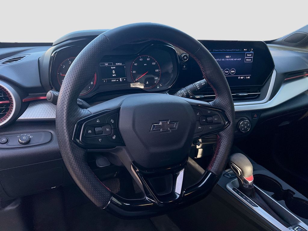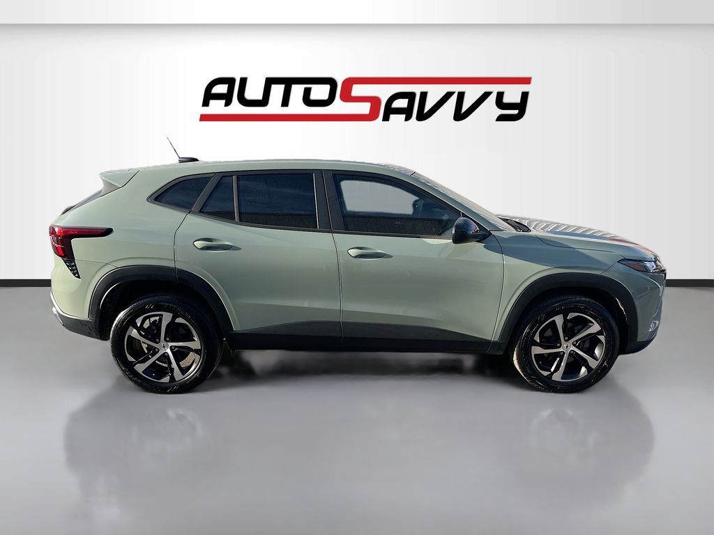 Explore the 2024 Chevrolet Trax FWD 1RS at AutoSavvy Las Vegas, a dynamic sport utility vehicle designed for modern drivers. This Savvy Certified Trax, finished in a unique Cacti Green, is powered by a robust Ecotec 1.2L I-3 turbocharged engine delivering 137 horsepower, providing both power and efficiency with an impressive 32 MPG on the highway. With only 25,401 miles, this SUV is ready for many more adventures. Inside, enjoy the stylish Jet Black/Gray interior with red accents, featuring heated seats and a heated steering wheel for ultimate comfort. The advanced Chevrolet Infotainment 3 system with an 8-inch touchscreen, Bluetooth connectivity, and a Wi-Fi hotspot ensures you stay connected on the go. Safety features such as Lane Departure Warning, Automatic Emergency Braking, and a Rear Cross Traffic Alert enhance your peace of mind. The current status of the title is branded, underscoring AutoSavvy's commitment to transparency and quality assurance. This vehicle is Savvy Certified, backed by our rigorous inspection process and a 4-month/4,500 Mile Warranty, offering you added confidence in your purchase. At AutoSavvy Las Vegas, each vehicle undergoes meticulous checks to meet our high standards, ensuring you drive away with peace of mind. Visit us today to explore the exceptional value and quality of the 2024 Chevrolet Trax FWD 1RS. Experience the AutoSavvy difference and take home a vehicle that perfectly combines cutting-edge technology, safety, and performance.