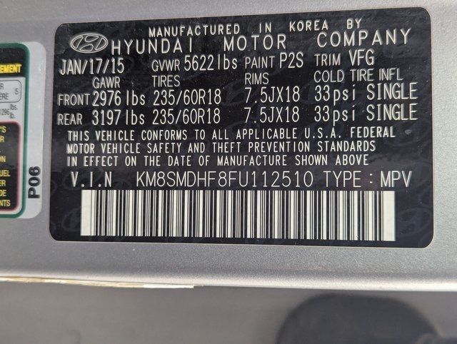 Iron Frost 2015 Hyundai Santa Fe GLS AWD 6-Speed Automatic with Shiftronic 3.3L V6 DGI DOHC 24V AWD, Gray Cloth.