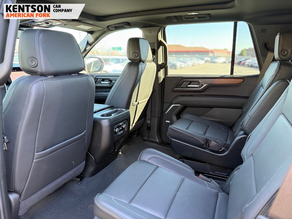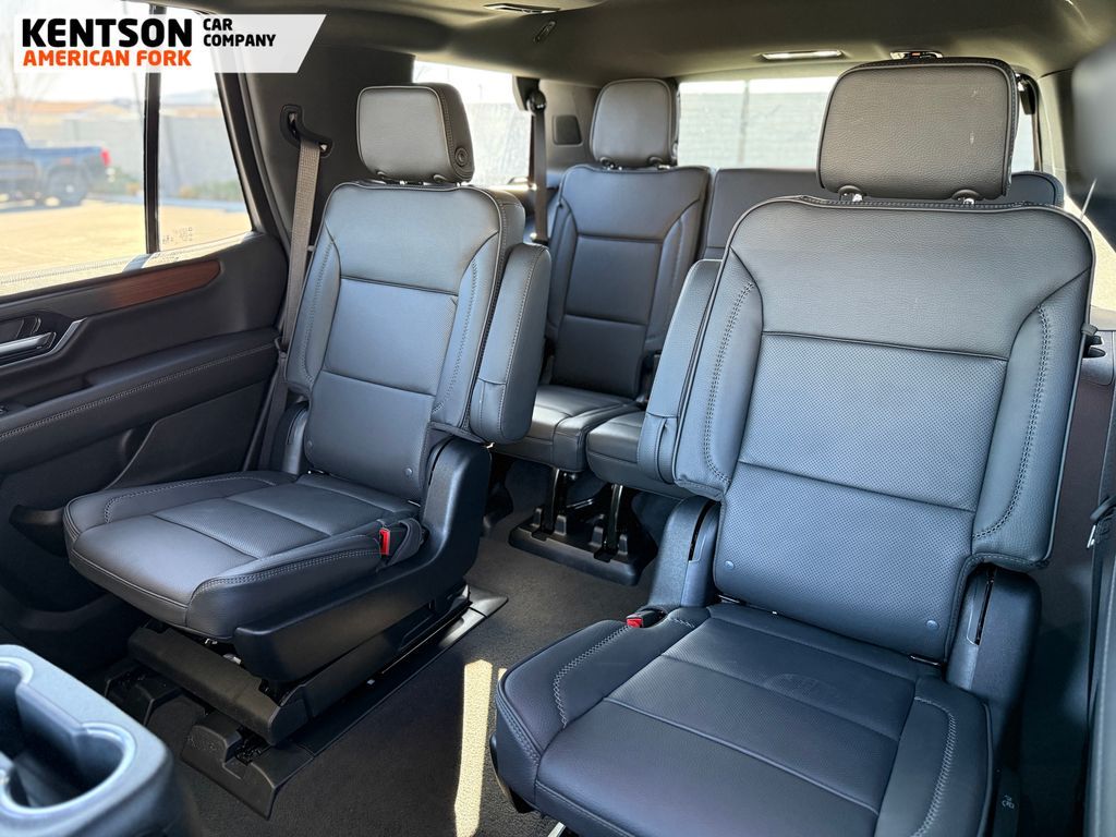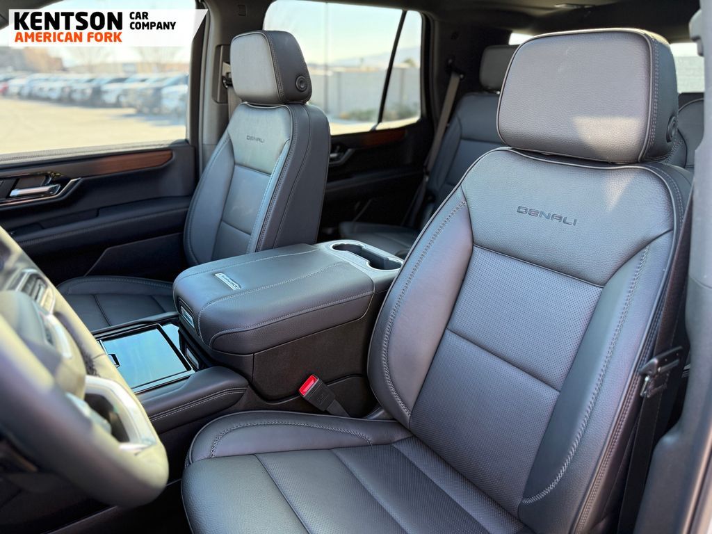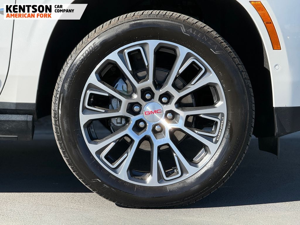 Preferred Equipment Group 5SA (15'' Diagonal Multi-Color Head-Up Display, 4-Way Power Driver Lumbar Seat Adjuster, 4-Way Power Front Passenger Lumbar Seat Adjuster, AutoSense Hands-Free Power Liftgate, Bright Front and Rear Door Sill Plates, Dual Exhaust System, Galvano Bodyside Moldings, Magnetic Ride Control Suspension, Perforated Heather and Ventilated Driver and Front Passenger Seats, Power Release 2nd Row Bucket Seats, Power Tilt and Telescopic Steering Column, and Wheels: 20'' x 9'' 6-Spoke Polished Aluminum), Sun and Power Step Package (Dual-Pane Panoramic Power Sunroof and Power-Retractable Assist Steps), 10 Speakers, 3.23 Rear Axle Ratio, 3rd row seats: split-bench, 4-Wheel Disc Brakes, ABS brakes, Adaptive suspension, Air Conditioning, Alloy wheels, AM/FM radio: SiriusXM with 360L, Apple CarPlay/Android Auto, Audio memory, Auto High-beam Headlights, Auto-dimming door mirrors, Auto-dimming Rear-View mirror, Auto-leveling suspension, Automatic temperature control, Bodyside moldings, Bose 10-Speaker Surround with CenterPoint, Brake assist, Bumpers: body-color, Compass, Delay-off headlights, Driver door bin, Driver vanity mirror, Dual front impact airbags, Dual front side impact airbags, Electronic Stability Control, Emergency communication system: OnStar and GMC connected services capable, Exterior Parking Camera Rear, Four wheel independent suspension, Front anti-roll bar, Front Bucket Seats, Front Center Armrest, Front dual zone A/C, Front fog lights, Front reading lights, Fully automatic headlights, Garage door transmitter, Heads-Up Display, Heated door mirrors, Heated Driver and Front Passenger Seats, Heated front seats, Heated rear seats, Heated steering wheel, Illuminated entry, Low tire pressure warning, Memory seat, Navigation system: GMC Connected Navigation, Occupant sensing airbag, Outside temperature display, Overhead airbag, Overhead console, Panic alarm, Passenger door bin, Passenger vanity mirror, Perforated Leather Seating Surfaces, Power door mirro