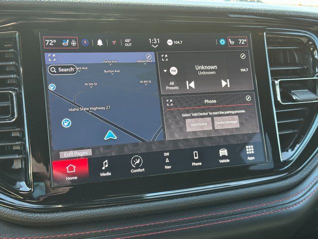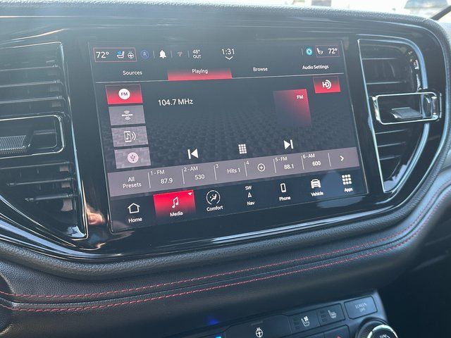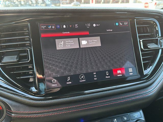 BLUETOOTH, BACK UP CAMERA, APPLE CARPLAY/ANDROID AUTO, MOONROOF/SUNROOF, AWD, 1-Year Trial (Registration Required), 10.1'' Touchscreen Display, 115V Auxiliary Power Outlet, 180 Amp Alternator, 3.45 Rear Axle Ratio, 3rd row seats: split-bench, 4-Wheel Disc Brakes, 4G LTE Wi-Fi Hot Spot, 6 Speakers, 7 & 4 Pin Wiring Harness, ABS brakes, Adaptive Cruise Control w/Stop, Air Conditioning, Alloy wheels, AM/FM radio: SiriusXM, Apple CarPlay, Apple CarPlay/Android Auto, Auto-Dimming Exterior Driver Mirror, Auto-dimming Rear-View mirror, Automatic temperature control, Black Roof Rails, Blind Spot w/Trailer Detection, Brake assist, Bumpers: body-color, Class IV Receiver Hitch, Cloth Bucket Seats w/Shift Insert, Compass, Connected Travel & Traffic Services, Delay-off headlights, Disassociated Touchscreen Display, Driver door bin, Driver vanity mirror, Dual front impact airbags, Dual front side impact airbags, Dual Remote USB Port - Charge Only, Electronic Stability Control, Exterior Mirrors w/Heating Element, Exterior Mirrors w/Memory, Exterior Mirrors w/Supplemental Signals, Floor Console w/Leather Armrest, For Details Visit DriveUconnect.com, Four wheel independent suspension, Front anti-roll bar, Front Bucket Seats, Front Center Armrest w/Storage, Front dual zone A/C, Front License Plate Bracket, Front reading lights, Full Speed Forward Collision Warning Plus, Fully automatic headlights, Garage door transmitter, Global Telematics Box Module (TBM), Gloss Black Exterior Mirrors, Google Android Auto, GPS Antenna Input, GPS Navigation, HD Radio, Heated door mirrors, Heated front seats, Heated Second Row Seats, Heated steering wheel, Heavy-Duty Engine Cooling, Illuminated entry, Integrated Center Stack Radio, Integrated Roof Rail Crossbars, Integrated Voice Command w/Bluetooth, Knee airbag, Leather steering wheel, Leather Trimmed Bucket Seats, Leather Wrapped Door Panels, LED Auxiliary Low Beam & Turn Signal, Low tire pressure warning, Occupant sensing airbag, Outside temperature display, Overhead airbag, Overhead console, Panic alarm, ParkView Rear Back-Up Camera, Passenger door bin, Passenger vanity mirror, Power 6x9 Multi-Function Foldaway Mirrors, Power 8-Way Driver Memory 8-Way Passenger Seats, Power door mirrors, Power driver seat, Power Driver/Passenger 4-Way Lumbar Adjust, Power Liftgate, Power steering, Power Sunroof, Power Tilt & Telescopic Steering Column, Power windows, Quick Order Package 2BG GT Plus, Radio data system, Radio: Uconnect 4 w/8.4'' Display, Radio: Uconnect 5 Nav w/10.1'' Display, Radio/Driver Seat/Mirrors Memory, Rear air conditioning, Rear anti-roll bar, Rear Load Leveling Suspension, Rear reading lights, Rear seat center armrest, Rear window defroster, Rear window wiper, Red Accent Stitching, Remote keyless entry, SiriusXM Guardian - Included Trial (B), SiriusXM w/360L, Speed control, Speed-sensing steering, Speed-Sensitive Wipers, Split folding rear seat, Spoiler, Sport steering wheel, Steering wheel mounted audio controls, Tachometer, Telescoping steering wheel, Tilt steering wheel, Traction control, Trailer Brake Control, Trip computer, USB Host Flip, Variably intermittent wipers, Ventilated Front Seats, Voltmeter, Wheels: 20'' x 8.0'' Fine Silver. DB Black Crystal Clearcoat 3.6L V6 24V VVT 8-Speed Automatic AWD