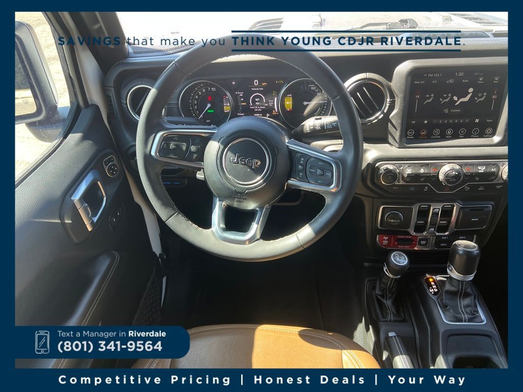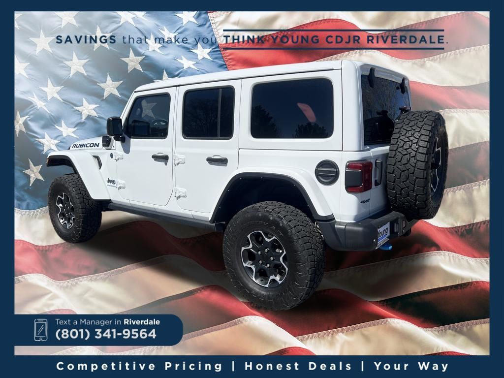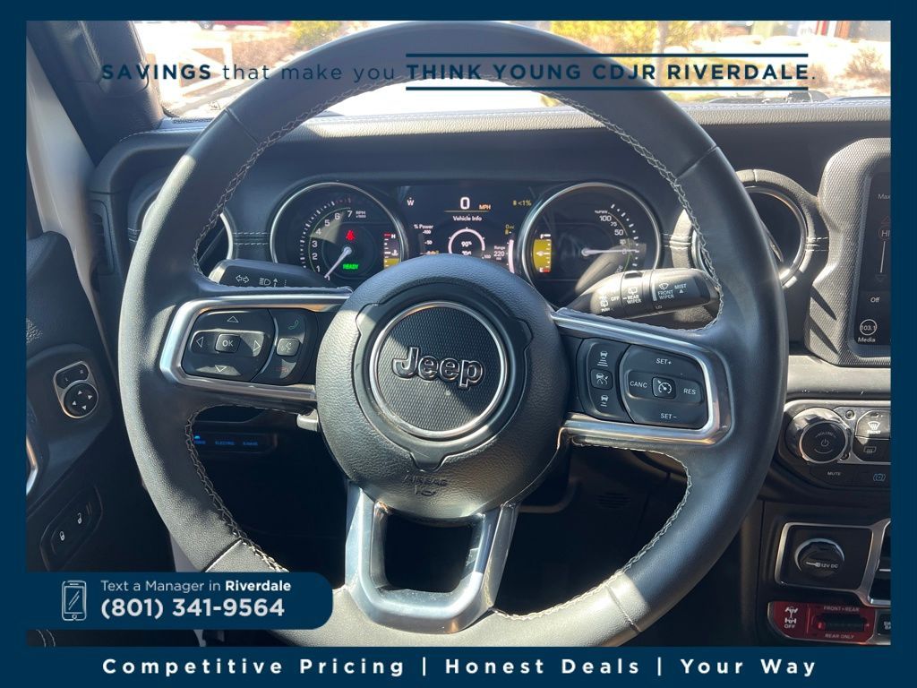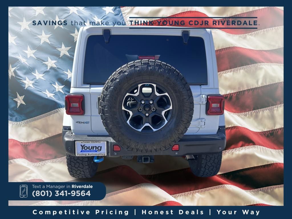 4WD ABS brakes, Alloy wheels, Compass, Electronic Stability Control, Front dual zone A/C, Heated door mirrors, Illuminated entry, Low tire pressure warning, Navigation System, ParkView Rear Back-Up Camera, Passenger door bin, Remote keyless entry, Traction control. Rubicon 20th Anniversary Edition 4xe Bright White Clearcoat 2.0L I4 DOHC 8-Speed Automatic