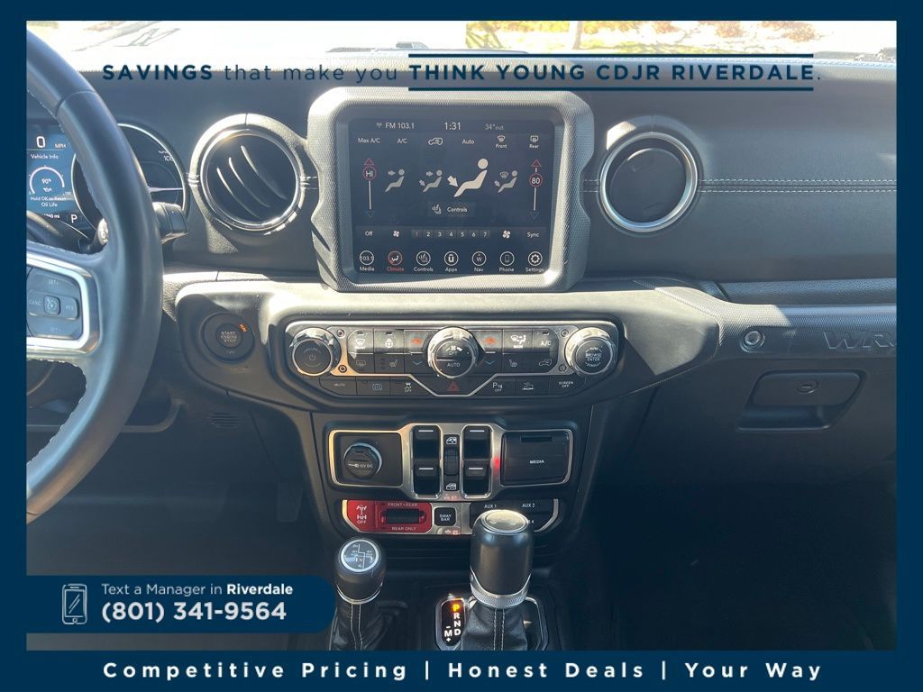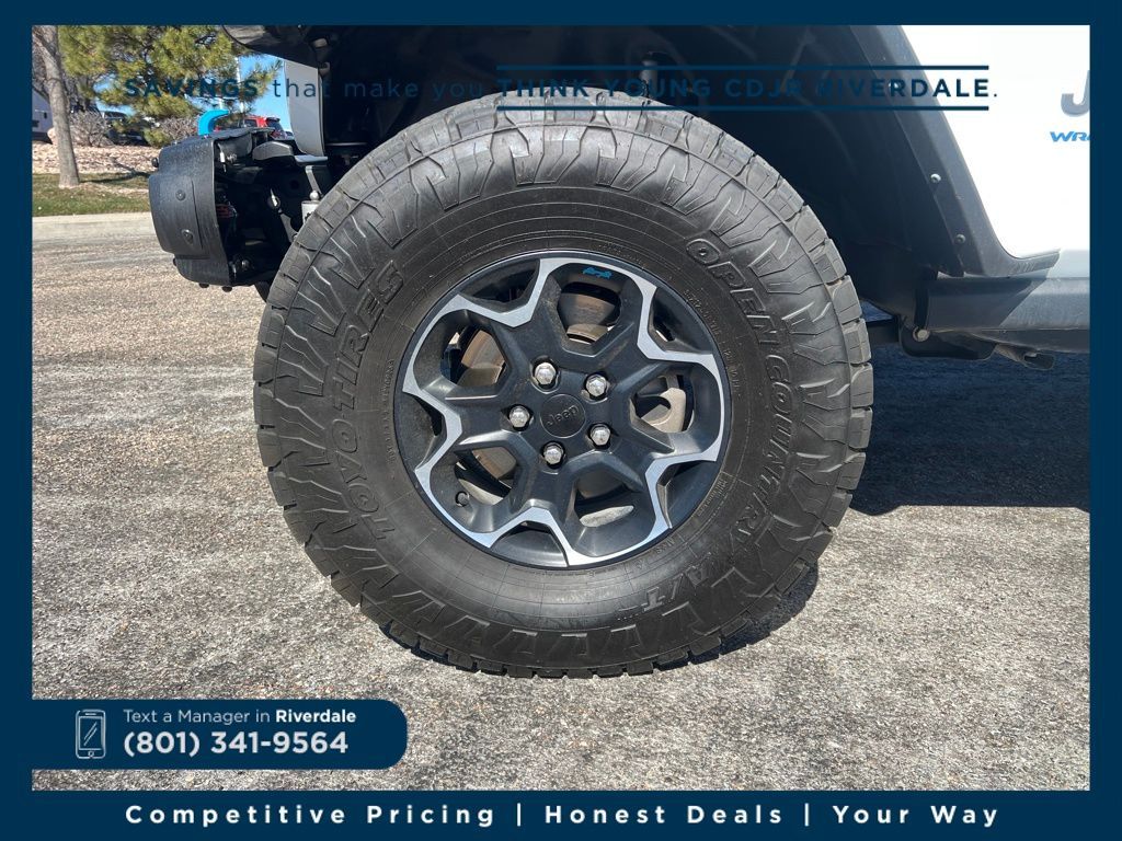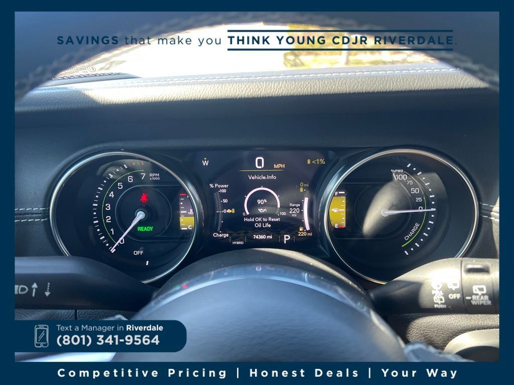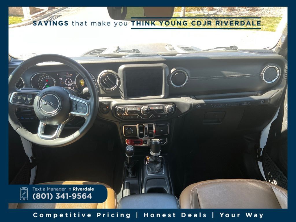 4WD ABS brakes, Alloy wheels, Compass, Electronic Stability Control, Front dual zone A/C, Heated door mirrors, Illuminated entry, Low tire pressure warning, Navigation System, ParkView Rear Back-Up Camera, Passenger door bin, Remote keyless entry, Traction control. Rubicon 20th Anniversary Edition 4xe Bright White Clearcoat 2.0L I4 DOHC 8-Speed Automatic
