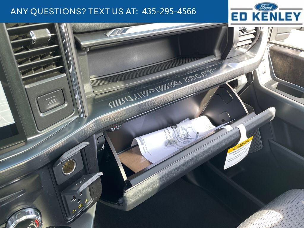 Pre-Collision Assist with Automatic Emergency Braking (AEB) forward collision mitigation,Lane Centering hands-on cruise control,Predictive Speed Assist Automatic curve slowdown cruise control,5G Modem - Ford Connectivity Package mobile hotspot internet access,Rear mounted camera,Reverse Camera rear mounted camera,Reverse Brake Assist collision mitigation,Lane Keeping Alert,Adaptive Cruise Control with Stop-and-Go,Head-up display,Brake assist system,Cruise control with steering wheel mounted controls,Power open and close tailgate,Ventilated driver and front passenger seats,Connected Navigation integrated navigation system with voice activation,Keyfob remote start,Heated steering wheel,Heated driver and front passenger seats,Heated rear seats,Leather front seat upholstery,ActiveX leatherette front seat upholstery,Primary monitor touchscreen,Driver seat power reclining, lumbar support, fore/aft control and height adjustable control,Driver seat power reclining, lumbar support, cushion tilt, fore/aft control and height adjustable control,Part-time 4WD,Powerstroke 6.7L V-8,Powerstroke 6.7L V-8 diesel direct injection, intercooled turbo, diesel, engine with 500HP,Powerstroke 6.7L V-8 diesel direct injection, DEVCT intercooled turbo, diesel, engine with 500HP,SYNC 4 with Enhanced Voice Recognition (Alexa-Built-In) built-in virtual assistant,Front wireless smart device charging,PCA with AEB and Intersection Assist forward collision mitigation with left turn assist,Driver Alert,Smart device remote start,Mechanical,Intelligent Access with hands-free access and push button start,Push-button,Aerial view camera,Onboard scale,Weight capacity alert,Bluetooth wireless audio streaming,Dynamic Hitch Assist vehicle to trailer hitching assist,Pro Trailer Backup Assist vehicle and trailer reverse assist,Pro Trailer Hitch Assist automated vehicle to trailer hitching assist,Gauge cluster display size: 12.00,Front mounted camera,Right side camera,Pickup box camera,Left side camera,BLIS with Trailer Tow Coverage blind spot warning,Pedestrian detection warning