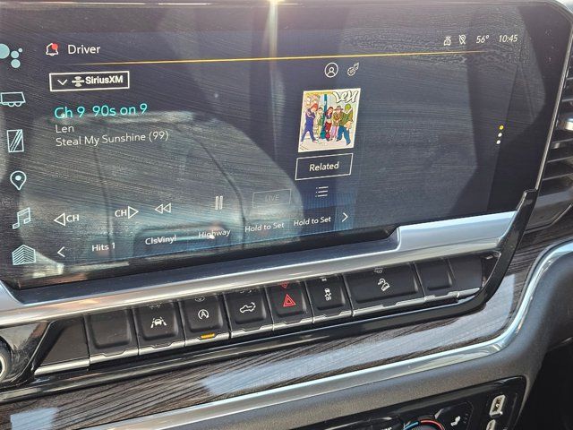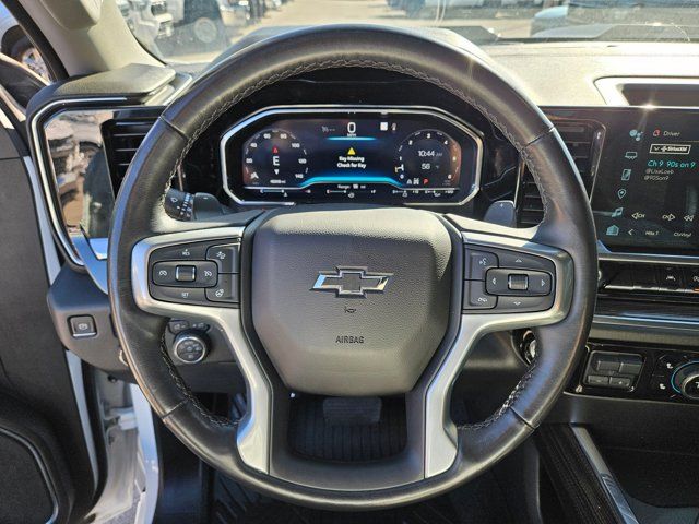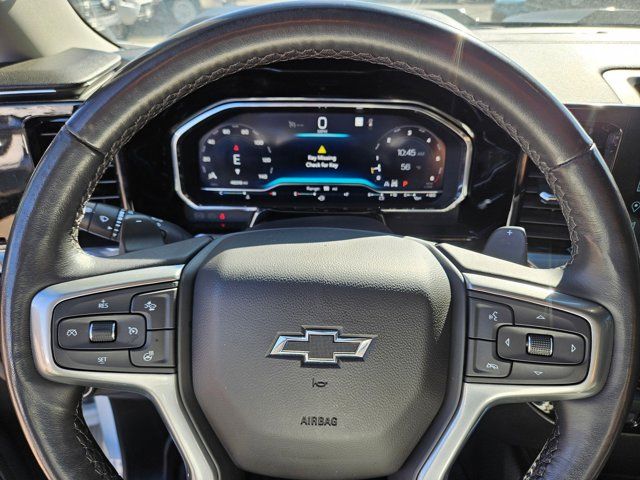 GVWR 7100 LBS. (3221 KG),USB PORTS 2 CHARGE/DATA PORTS LOCATED INSIDE CENTER CONSOLE,TIRE SPARE 265/70R17SL ALL-SEASON BLACKWALL (STD),UNIVERSAL HOME REMOTE,SUMMIT WHITE,COOLING EXTERNAL ENGINE OIL COOLER,WHEELS 18 X 8.5 (45.7 CM X 21.6 CM) HIGH GLOSS BLACK PAINTED ALUMINUM (STD),ALTERNATOR 170 AMPS,TRAILER BRAKE CONTROLLER INTEGRATED,LICENSE PLATE KIT FRONT,CONVENIENCE PACKAGE II includes (UG1) Universal Home Remote (A48) rear sliding power window (PZ8) Hitch Guidance with Hitch View (JL1) Trailer brake controller and (UET) Trailering App Includes (UQA) Bose Premium Sound System.,BOSE SOUND SYSTEM PREMIUM 7-SPEAKER SYSTEM with Richbass woofer,TRANSMISSION 10-SPEED AUTOMATIC with Electronic Transmission Range Selector (ETRS) electronically controlled with overdrive tow/haul mode and steering column paddle shifters. Includes Cruise Grade Braking and Powertrain Grade Braking,NOT EQUIPPED WITH STEERING COLUMN LOCK SEE DEALER FOR DETAILS,REAR AXLE 3.23 RATIO,LT TRAIL BOSS PREFERRED EQUIPMENT GROUP includes standard equipment,WINDOW POWER REAR SLIDING with rear defogger,SEATS FRONT BUCKET with center console (Includes (EPH) Electronic Transmission Range Selector (console mounted).,TIRES LT275/65R18C BLACKWALL GOODYEAR WRANGLER DURATRAC MT (STD),HITCH GUIDANCE WITH HITCH VIEW,SHIFTER ELECTRONIC TRANSMISSION RANGE SELECTOR includes steering column paddle shifters,COOLING AUXILIARY EXTERNAL TRANSMISSION OIL COOLER,EXHAUST DUAL WITH POLISHED OUTLETS,JET BLACK CLOTH SEAT TRIM,ENGINE 5.3L ECOTEC3 V8 (355 hp [265 kW] @ 5600 rpm 383 lb-ft of torque [518 Nm] @ 4100 rpm); featuring available Dynamic Fuel Management that enables the engine to operate in 17 different patterns between 2 and 8 cylinders depending on demand to optimize power delivery and efficiency Includes (N10) dual exhaust.),CENTER CONSOLE FLOOR-MOUNTED with cup holders Wireless Charging power cord management hanging file folder capability; includes removable storage tray Includes (EPH) Electronic Transmission Range Selector (console mounted).),AUDIO SYSTEM CHEVROLET INFOTAINMENT 3 PREMIUM SYSTEM with Google built-in 13.4 diagonal HD color touchscreen includes multi-touch display AM/FM stereo Bluetooth streaming audio for music and most phones; featuring wireless Android Auto and Apple CarPlay capability for compatible phones advanced voice recognition in-vehicle apps personalized profiles for infotainment and vehicle settings (STD),WIRELESS CHARGING Beginning October 26 2022 through November 20 2022 certain vehicles will be forced to include (00C) Not Equipped with Wireless Charging which removes Wireless Charging. See dealer for details or the window label for the features on a specific vehicle.),TRAILERING APP,Tow Hitch,Lane Departure Warning,Lane Keeping Assist,Front Collision Mitigation,Front Collision Warning,Automatic Highbeams,Climate Control,Multi-Zone A/C,A/C,Security System,Rear Defrost,Keyless Entry,Power Door Locks,Power Driver Seat,Heated Front Seat(s),Driver Adjustable Lumbar,Remote Engine Start,Keyless Start,Heated Steering Wheel,High Output,Keyless Start,Locking/Limited Slip Differential,Four Wheel Drive,Tow Hooks,Power Steering,ABS,4-Wheel Disc Brakes,Aluminum Wheels,Tires - Front On/Off Road,Tires - Rear On/Off Road,Tires - Front All-Season,Tires - Rear All-Season,Daytime Running Lights,LED Headlights,Automatic Highbeams,Fog Lamps,Heated Mirrors,Power Mirror(s),Privacy Glass,AM/FM Stereo,MP3 Capability,Bluetooth Connection,Auxiliary Audio Input,Smart Device Integration,Satellite Radio,Requires Subscription,Navigation System,Satellite Radio,Telematics,Requires Subscription,Bluetooth Connection,Smart Device Integration,Bluetooth Connection,WiFi Hotspot,Split Bench Seat,Cloth Seats,Power Driver Seat,Driver Adjustable Lumbar,Heated Front Seat(s),Pass-Through Rear Seat,Rear Bench Seat,Floor Mats,Heated Steering Wheel,Steering Wheel Audio Controls,Adjustable Steering Wheel,Power Windows,Power Windows,Power Door Locks,Remote Engine Start,Keyless Entry,Power Door Locks,Keyless Start,Cruise Control,Security System,MP3 Capability,Auxiliary Audio Input,Climate Control,Multi-Zone A/C,A/C,A/C,Rear A/C,Rear Defrost,Front Collision Mitigation,Front Collision Warning,Front Collision Mitigation,Traction Control,Stability Control,Daytime Running Lights,Driver Air Bag,Passenger Air Bag,Front Side Air Bag,Front Head Air Bag,Rear Head Air Bag,Passenger Air Bag Sensor,Telematics,Requires Subscription,Back-Up Camera,Lane Departure Warning,Lane Keeping Assist,Front Collision Warning,Driver Restriction Features,Tire Pressure Monitor