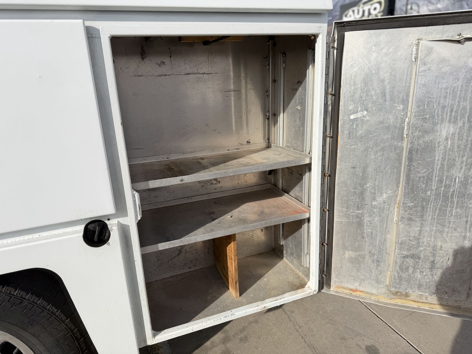 Lockable metal toolbox mounted in the bed